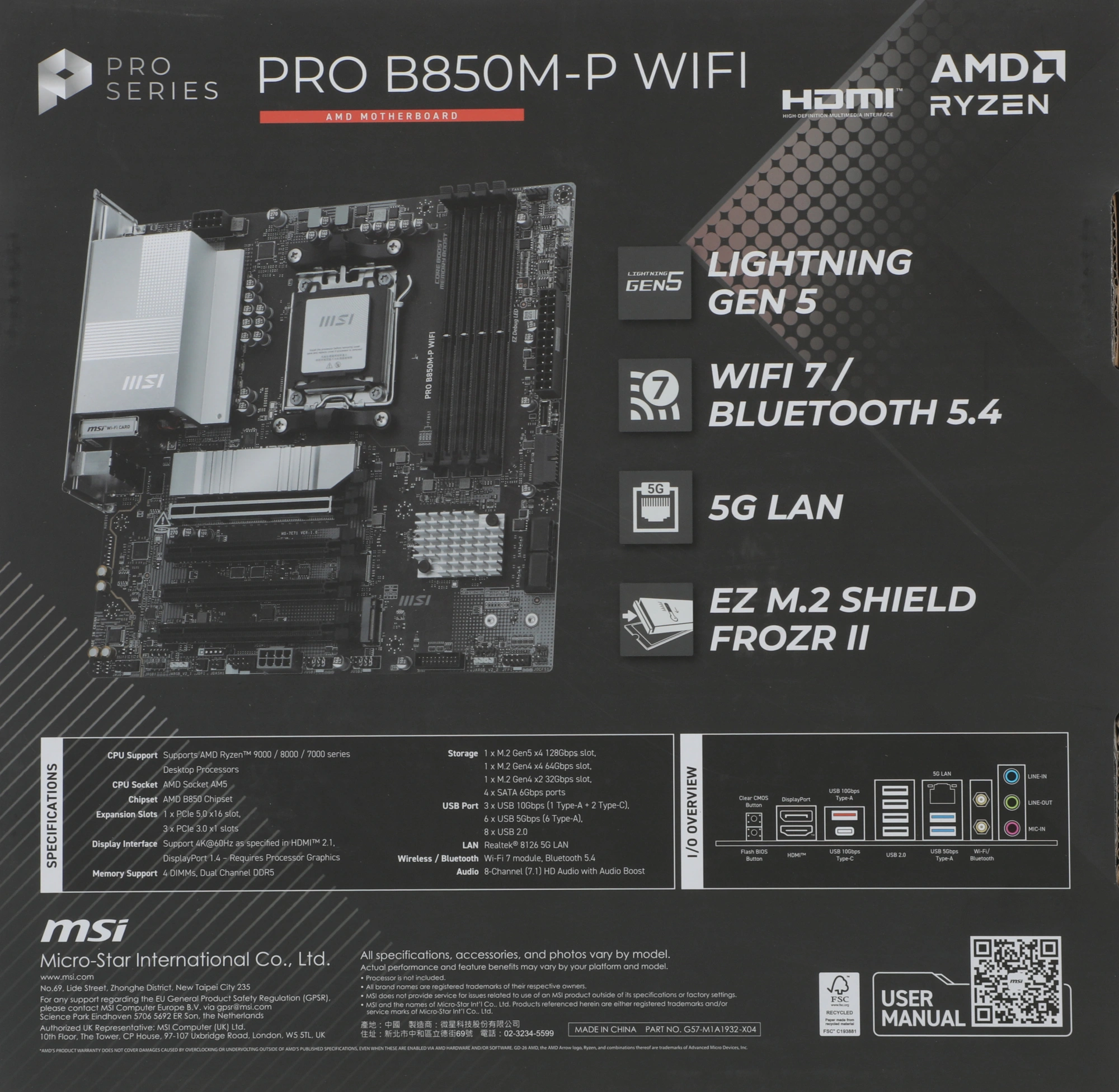 Socket AM5 AMD B850 4xDDR5 mATX AC`97 8ch(7.1) 5Gi...