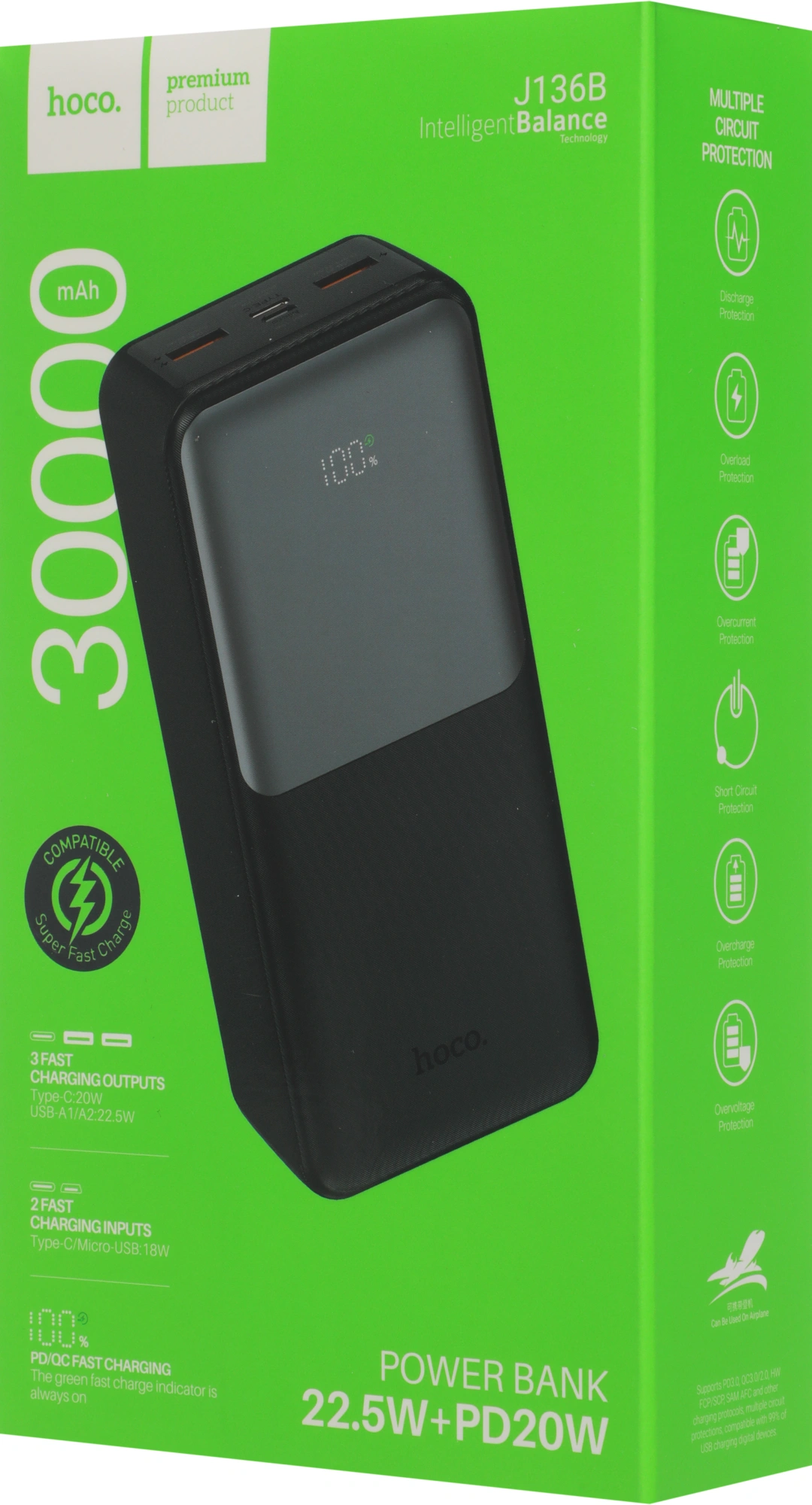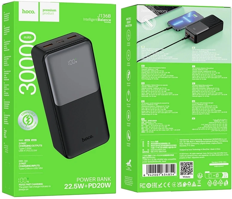 30000mAh QC3.0/PD3.0 22.5W 3A 2xUSB-A/USB-C черны...