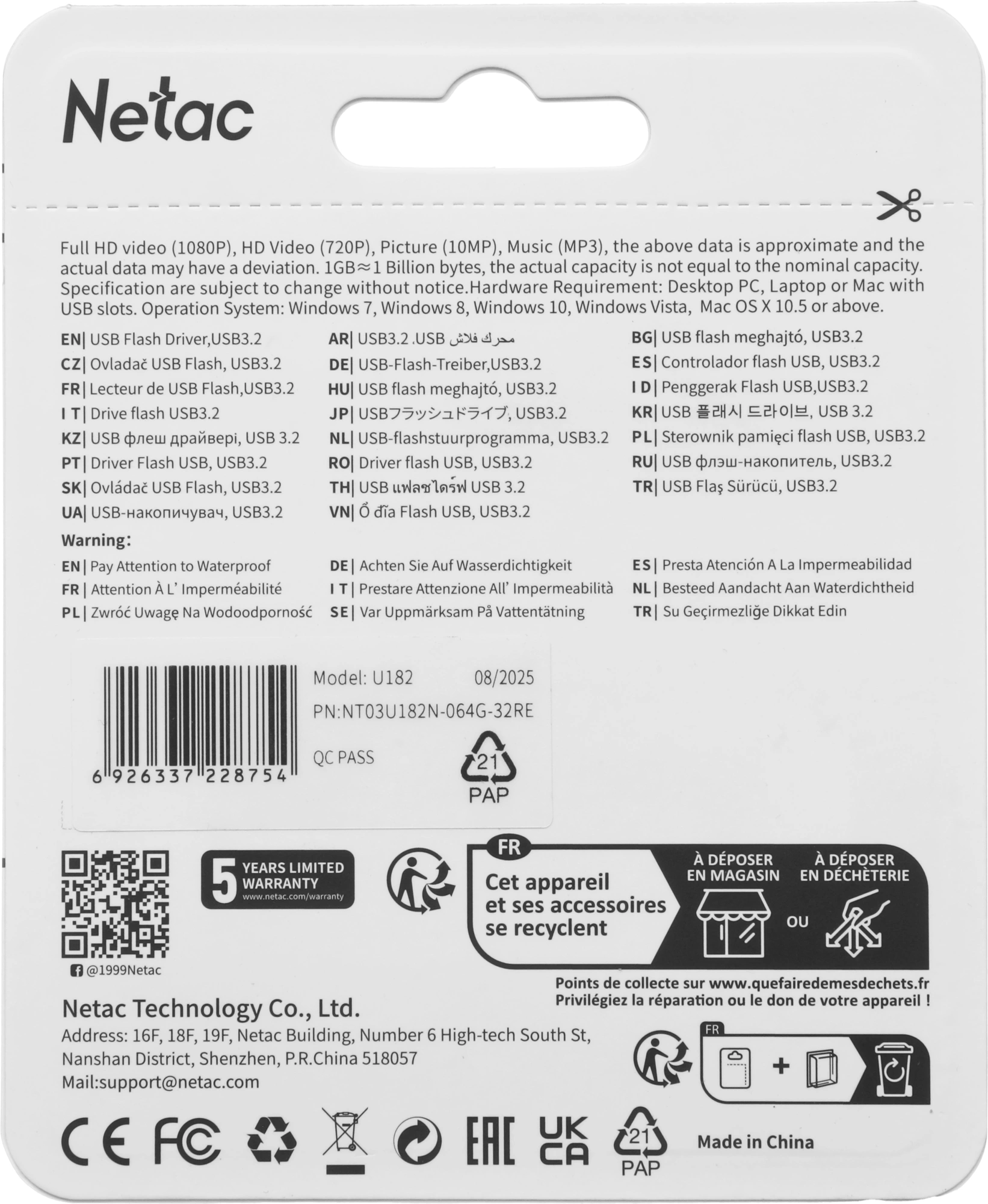 NT03U182N-064G-32RE USB3.2 красный/черный