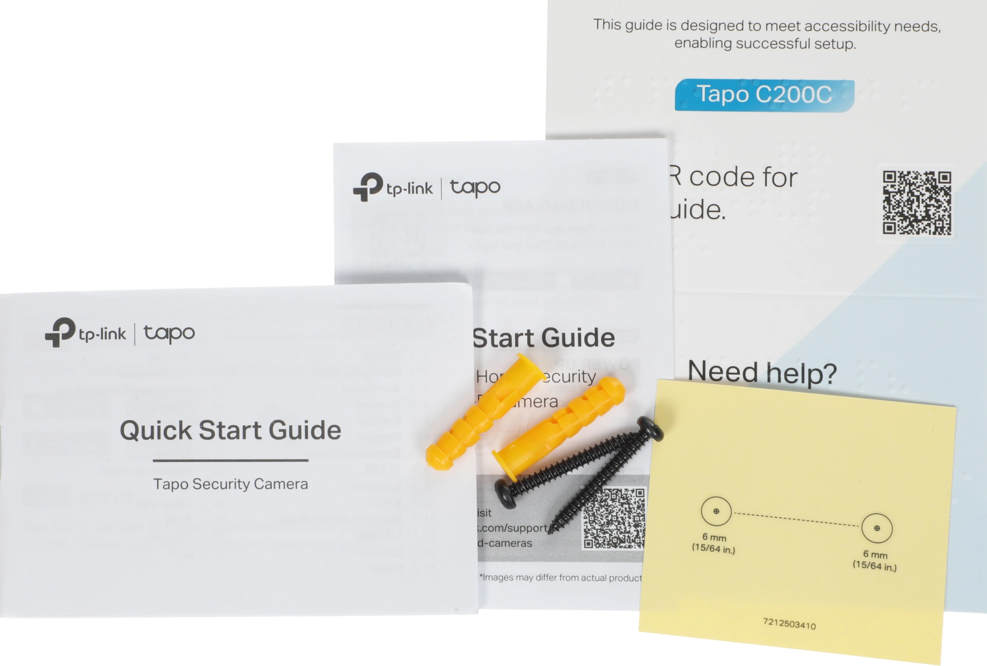адаптер питания, документация, комплект крепления, монтажная пластина, основание камеры