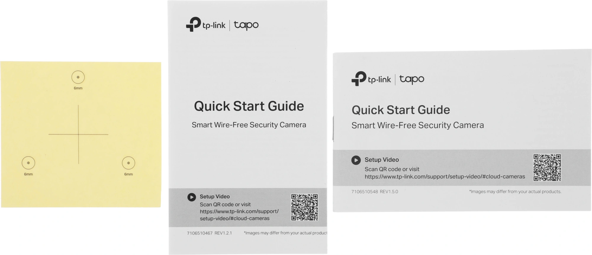 Камера Tapo C420, Аккумулятор для камеры, USB-адаптер, Кабель USB-адаптера, Крепёжные винты, Крепёжные шаблоны, Крепления для камер, Краткое руководство по началу работы