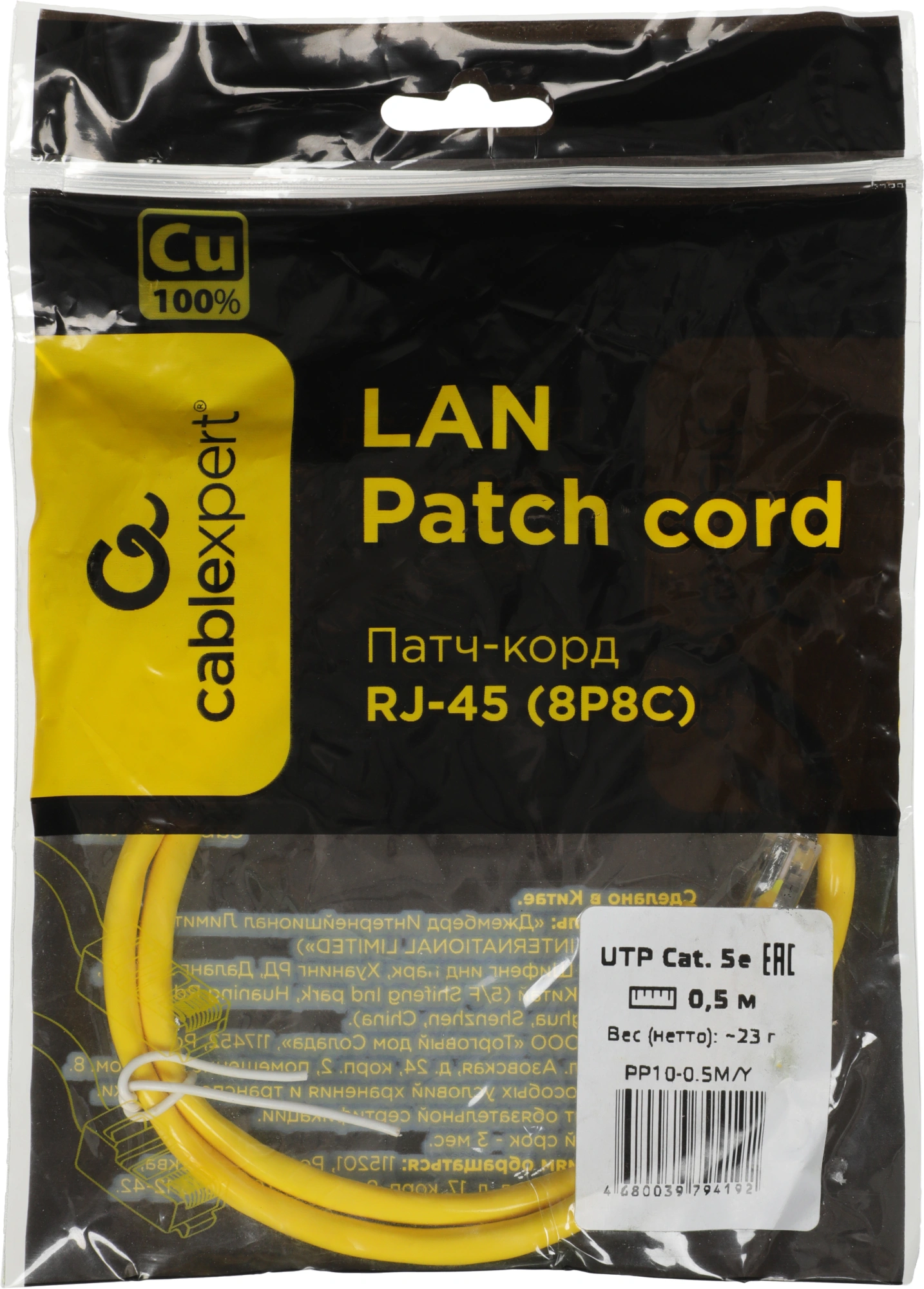 UTP 4 пары cat.5E 0.02мм Cu molded 0.5м желтый RJ-...