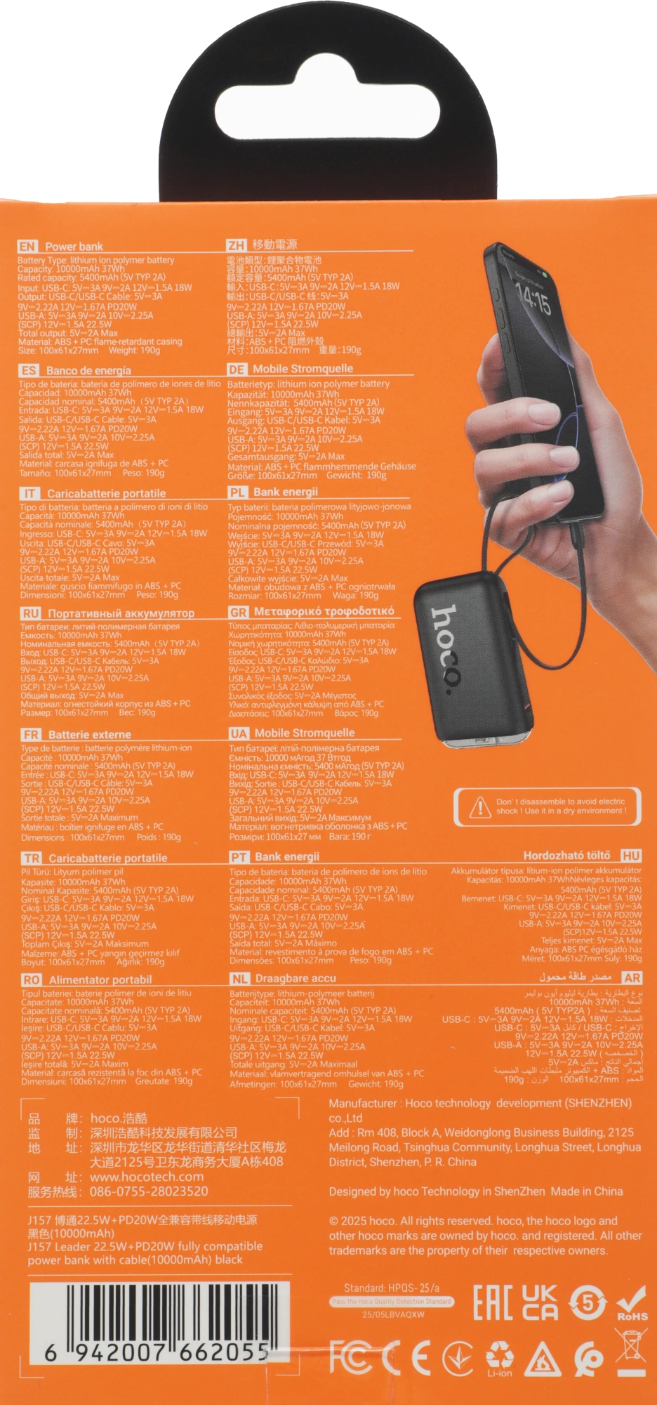 10000mAh QC3.0/PD 22.5W 2A USB-A/2xUSB-C черный (...