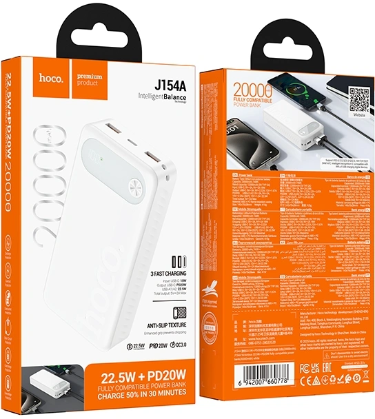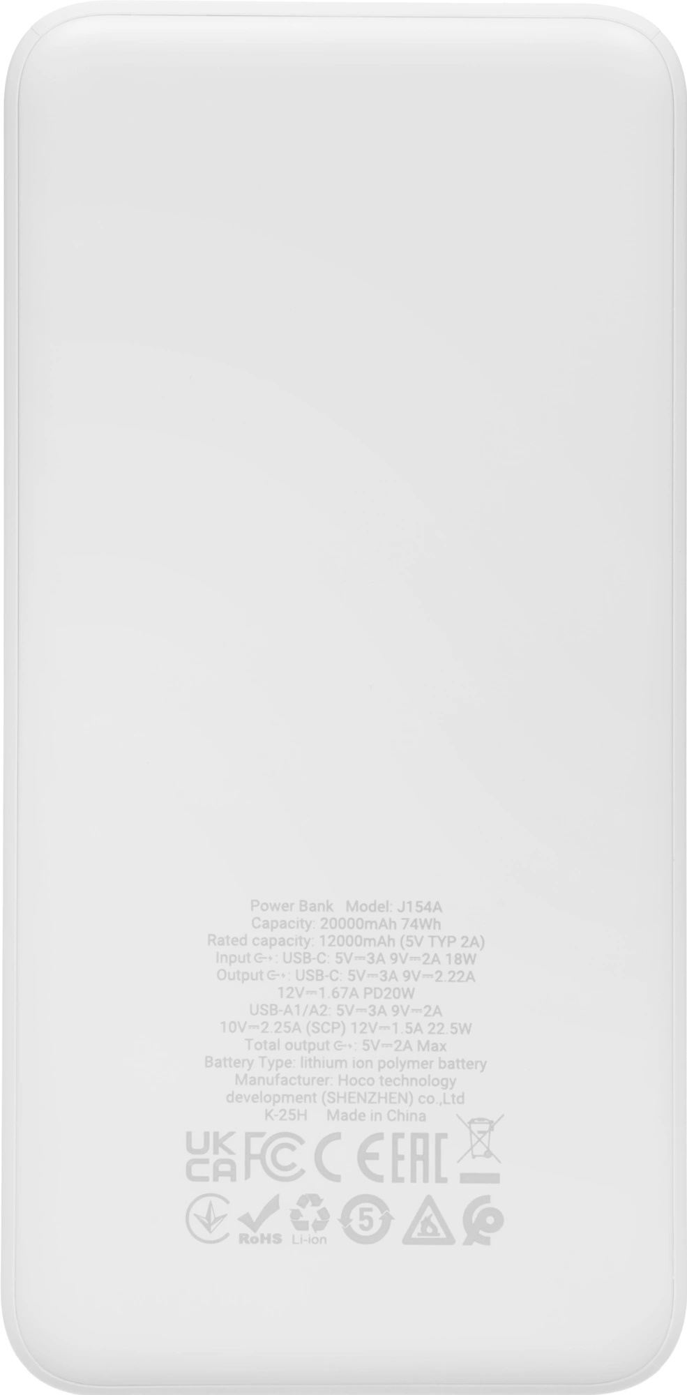 20000mAh QC3.0/PD 22.5W 3A 2xUSB-A/USB-C белый (6...