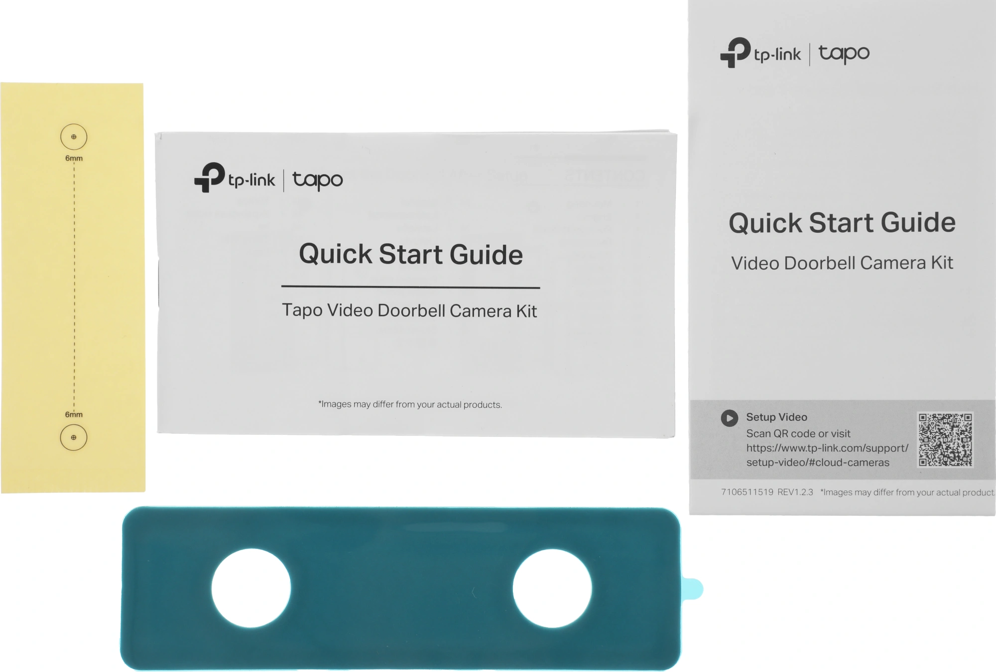 дверной звонок;Центр управления Tapo H200;Аккумулятор Tapo A100;Адаптер питания;USB-адаптер Кабель USB-адаптера;кабель Ethernet RJ45;Монтажный шаблон для установки под углом;Монтажный шаблон (2 шт.);крепление;Крепёжная рамка 15°;Инструмент для извлечения дверного звонка;Винт и дюбель 2 шт.