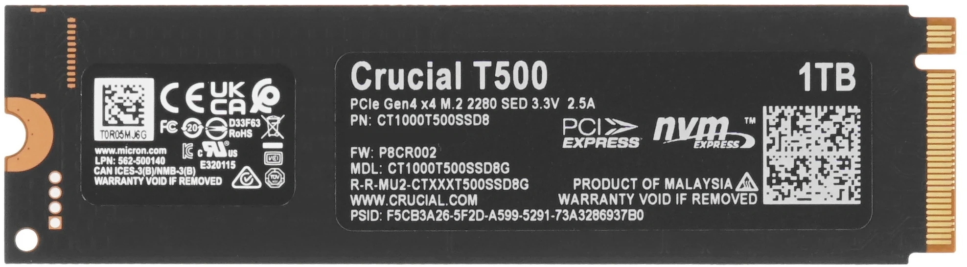 Накопитель SSD Crucial PCIe 4.0 x4 1TB CT1000T500SSD8 T500