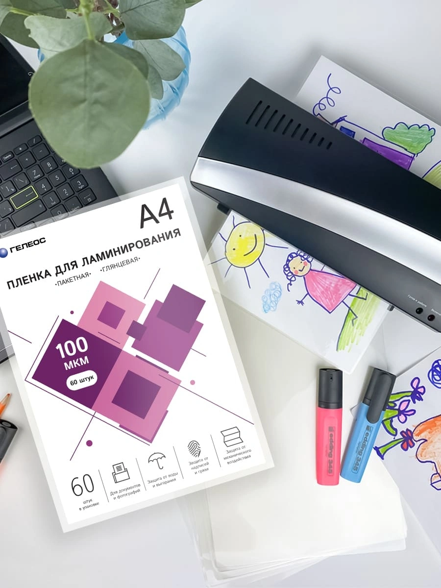 Пленка для ламинирования Heleos 100мкм A4 (60шт) глянцевая 216x303мм LPA4-100-60