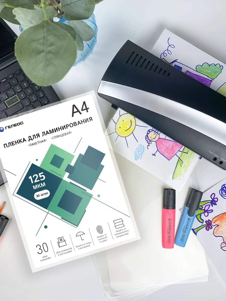 Пленка для ламинирования Heleos 125мкм A4 (30шт) глянцевая 216x303мм LPA4-125-30
