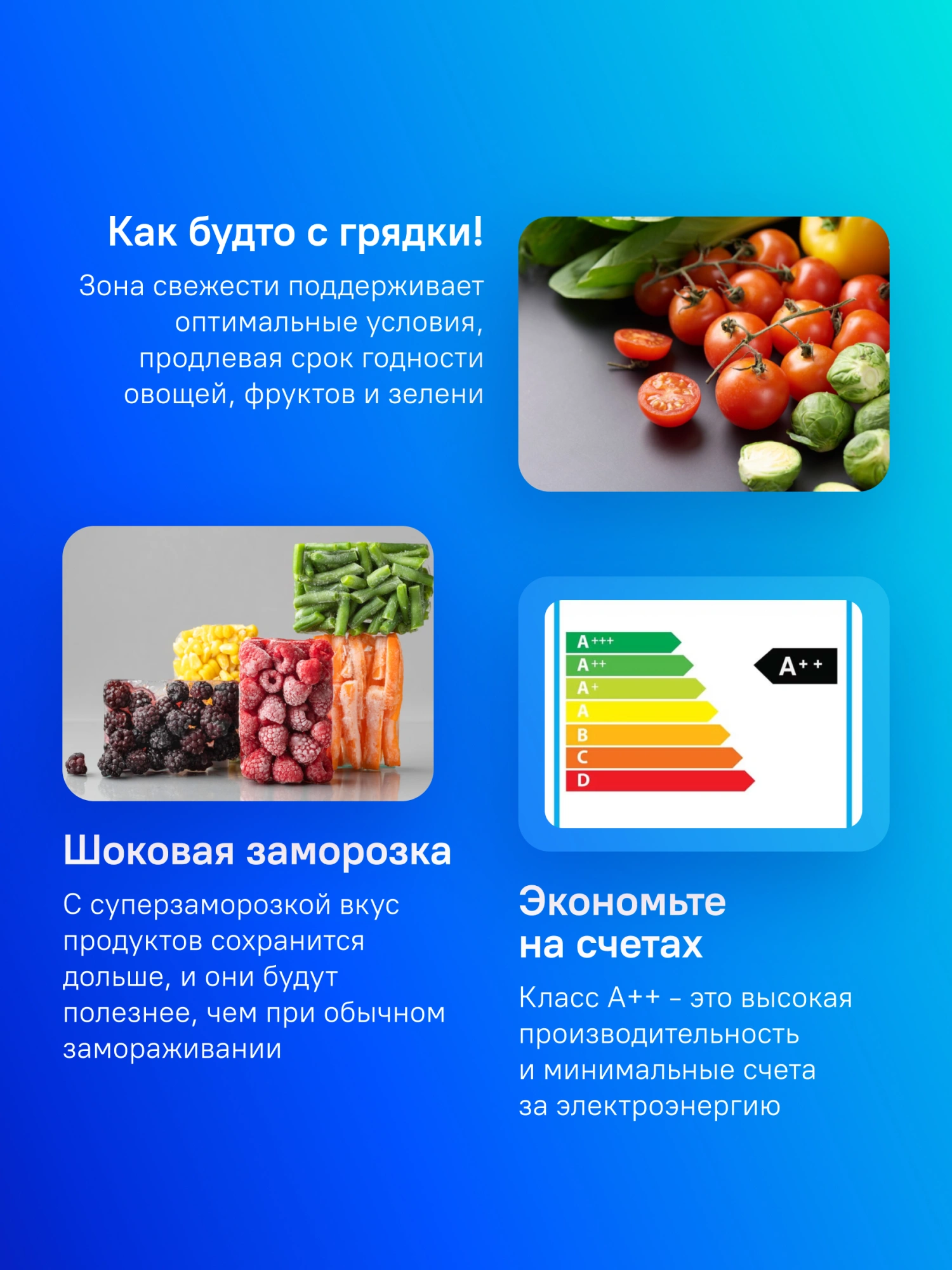 защита от детей, режим отпуск, суперзаморозка, суперохлаждение