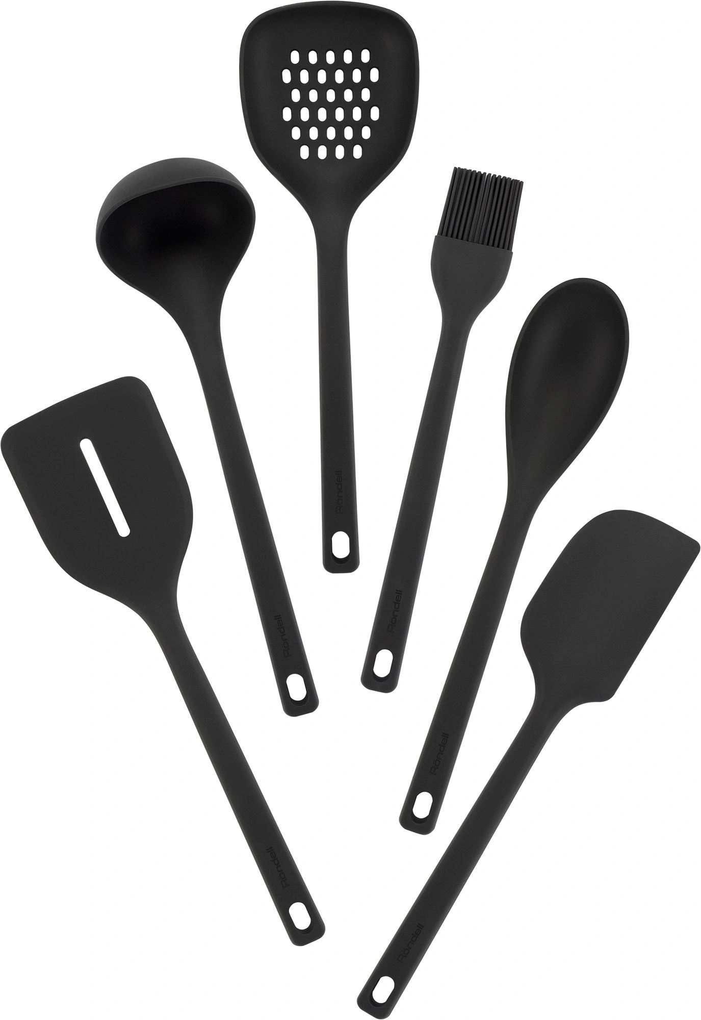 "Набор кухонных принадлежностей Rondell Flamme из силикона и нержавеющей стали – это отличный выбор для тех, кто любитт качество, удобство и современный дизайн. В кухонный набор входят: лопатка кухонная с прорезями, половник, шумовка, ложка с прорезями. Набор кухонных принадлежностей выполнен из тер