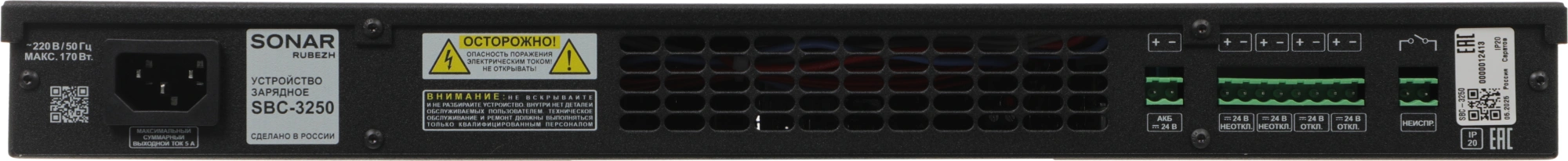 Зарядное устройство Защита АКБ от скачков тока и напряжения, автоматический заряд и разряд, защита от несоблюдения полярности, ток заряда до 0.35 А, отключение заряда АКБ +27.3 В,выходы питания 24 В ОТКЛ и НЕОТКЛ, потребляемая мощность 165 Вт, 220 В (AC), 1 U, 483*44*210 мм, 5 кг