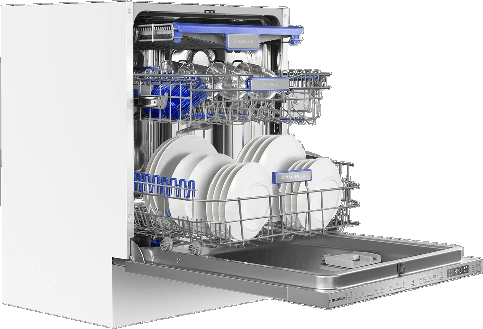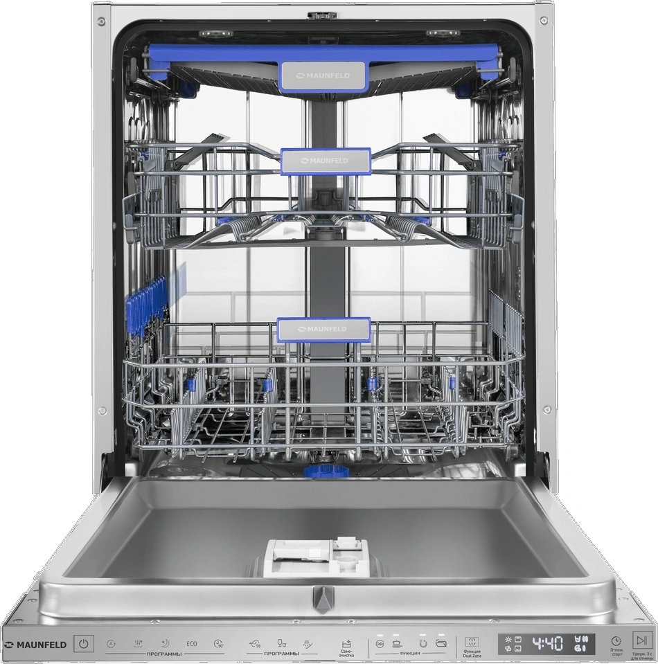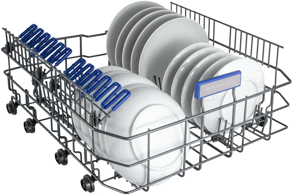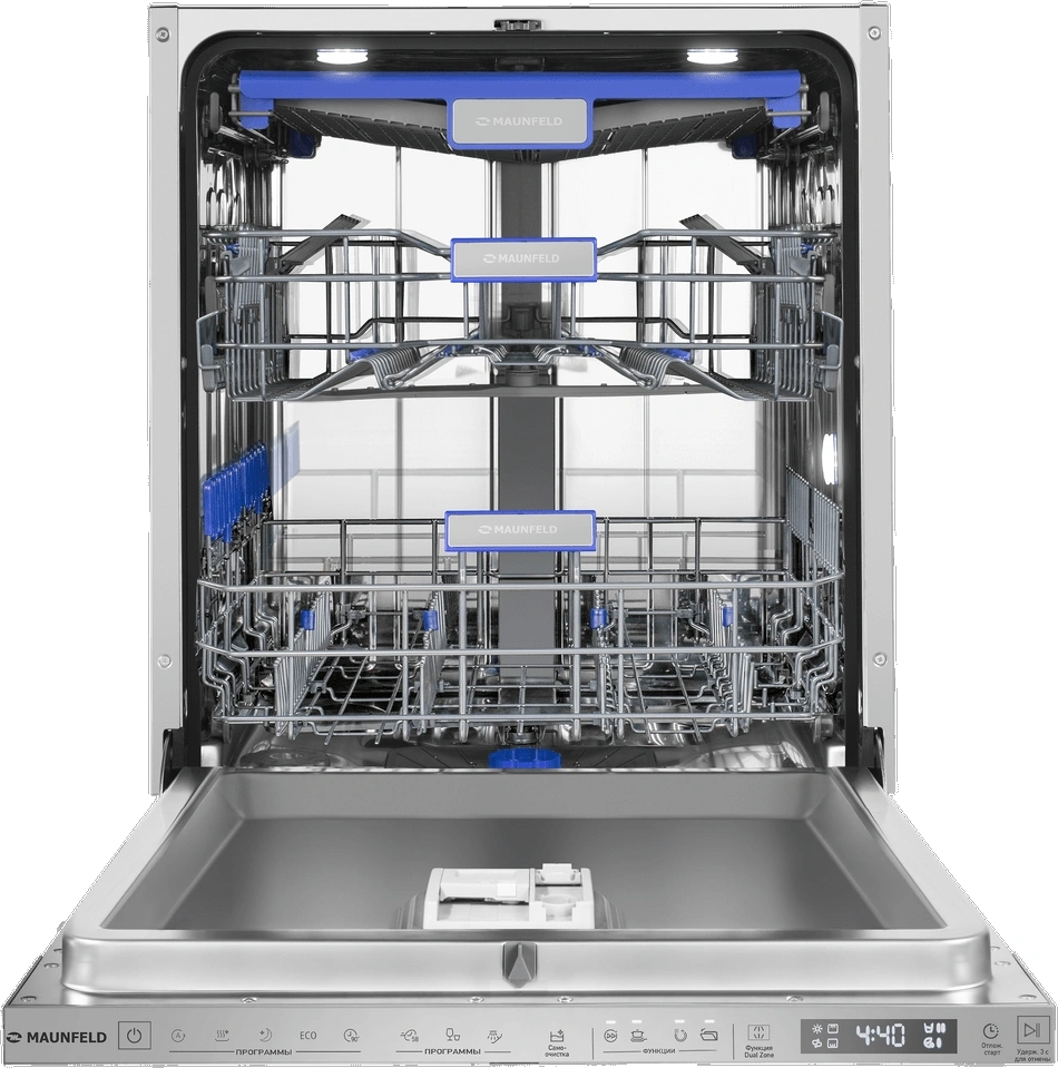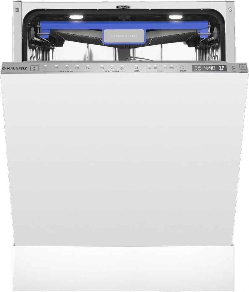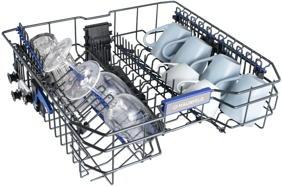 корзина для столовых приборов, освещение, полки для кружек, разбрызгиватель над верхней корзиной, регулируемая по высоте корзина для посуды