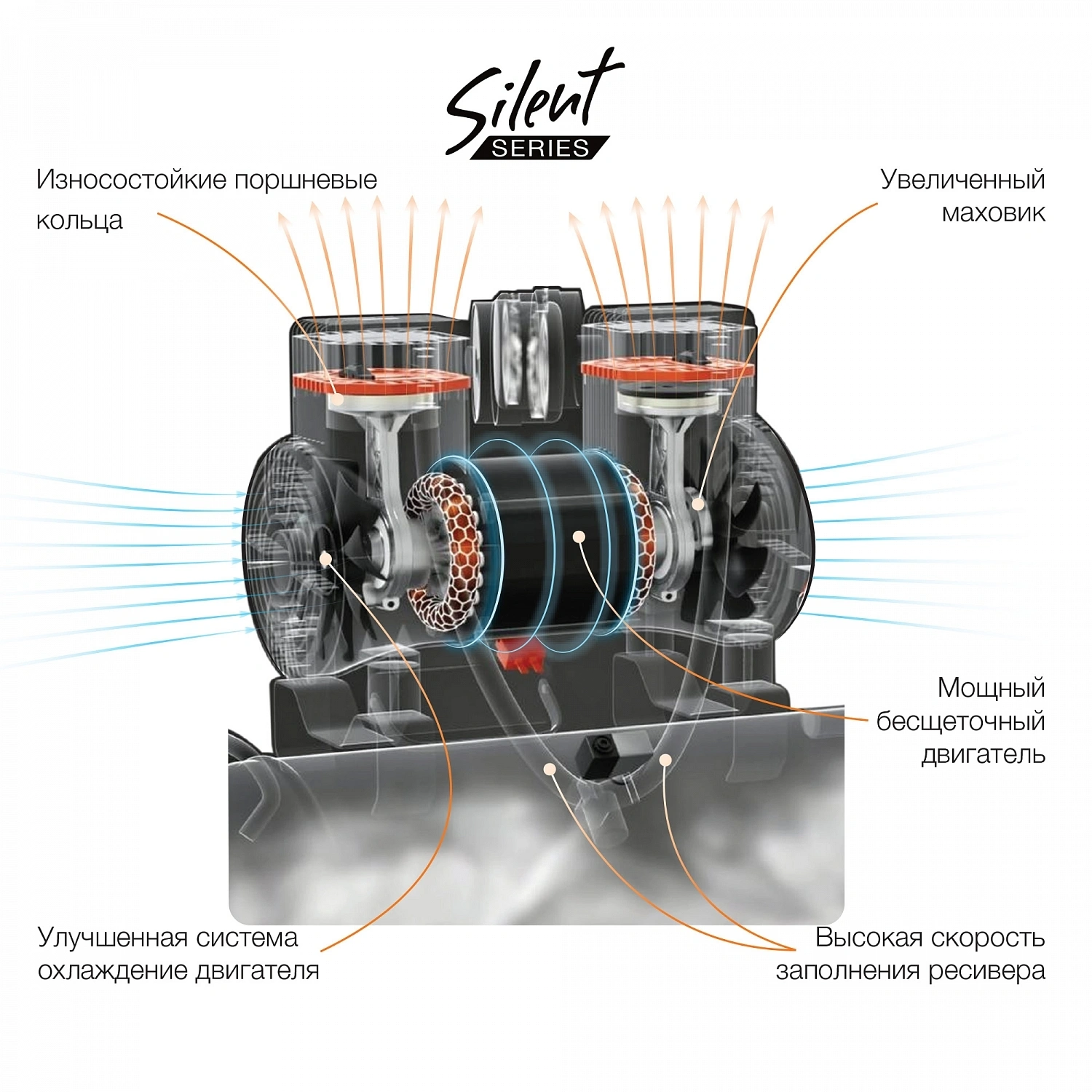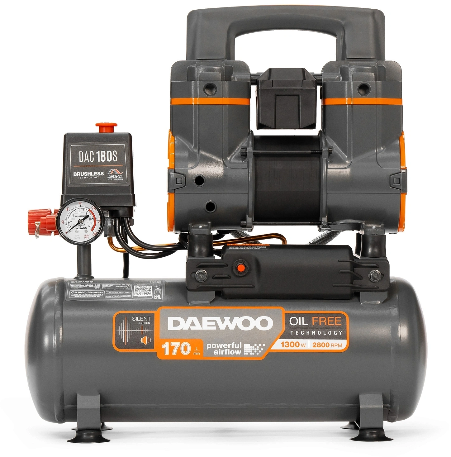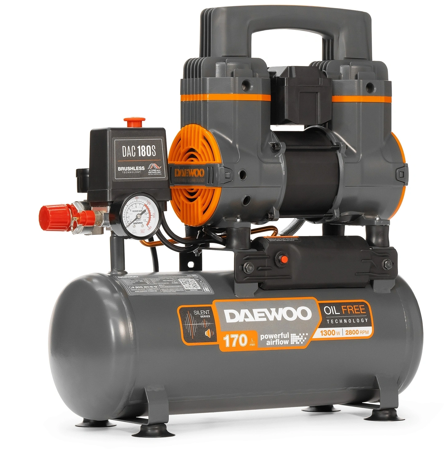 безмасляный 170л/мин 8л 1300Вт серый/оранжевый