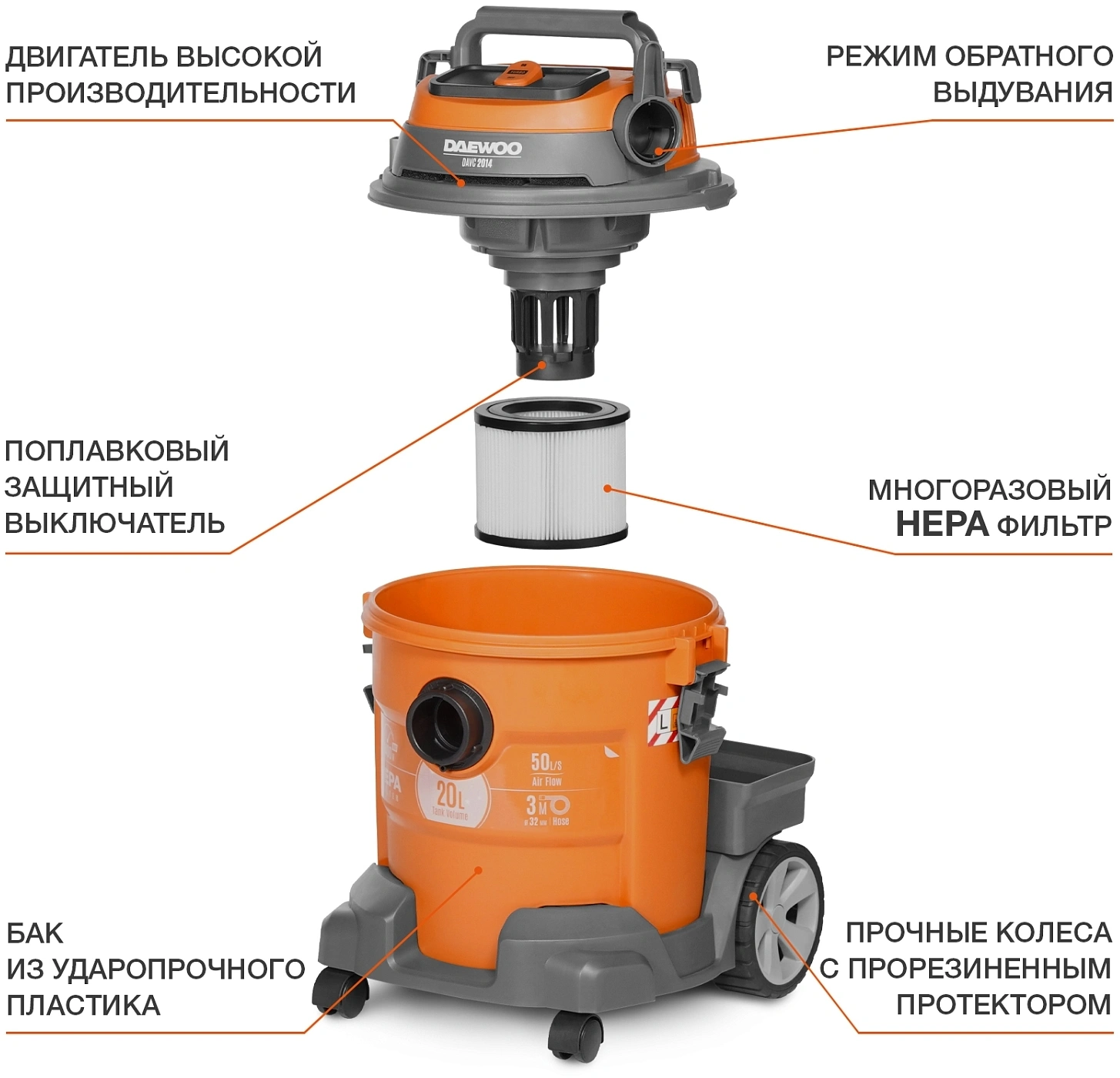 1400Вт (уборка: сухая/влажная/выдув/сбор воды) сер...