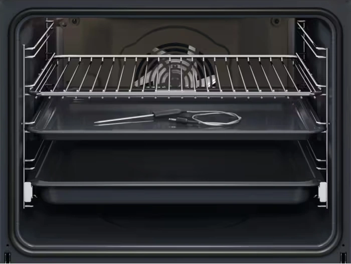 вентилятор охлаждения, дисплей, полностью стеклянная внутренняя поверхность дверцы духовки, телескопические направляющие