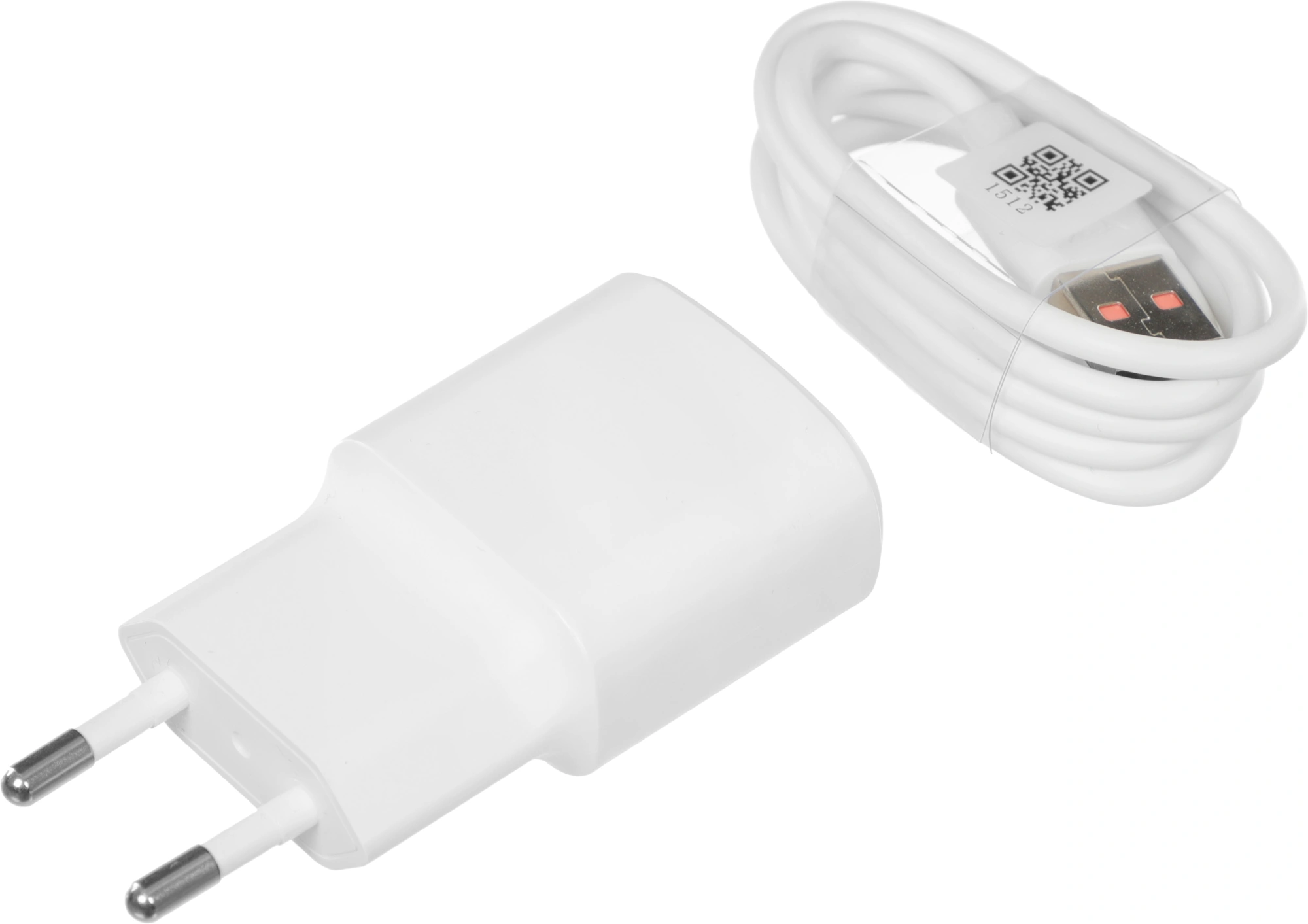 Смартфон, адаптер питания, кабель, защитная пленка (наклеена на экран), булавка для сим-карты, документация