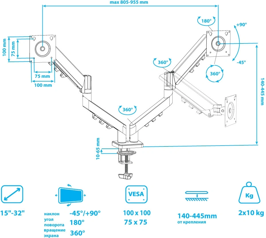 черный 15"-32" макс.10кг настольный поворот и накл...