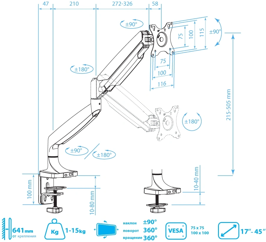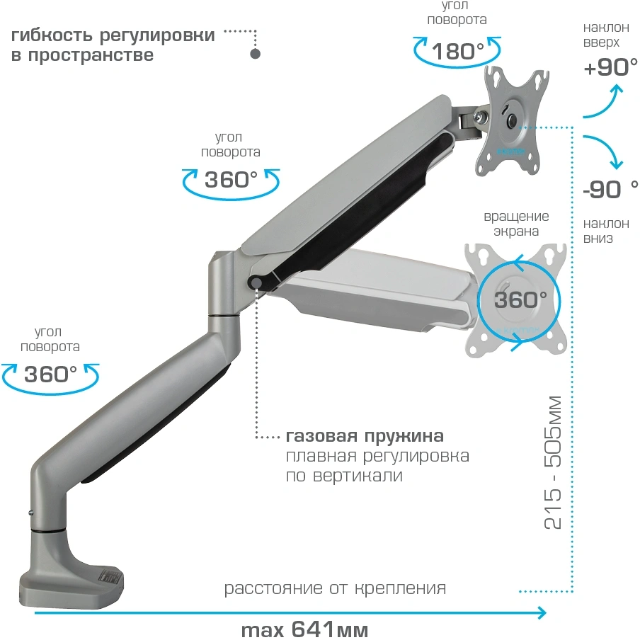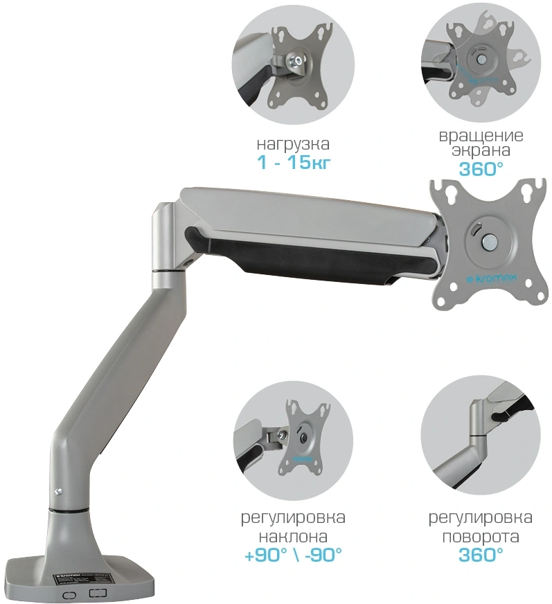 серебристый 17"-45" макс.15кг настольный поворот и...
