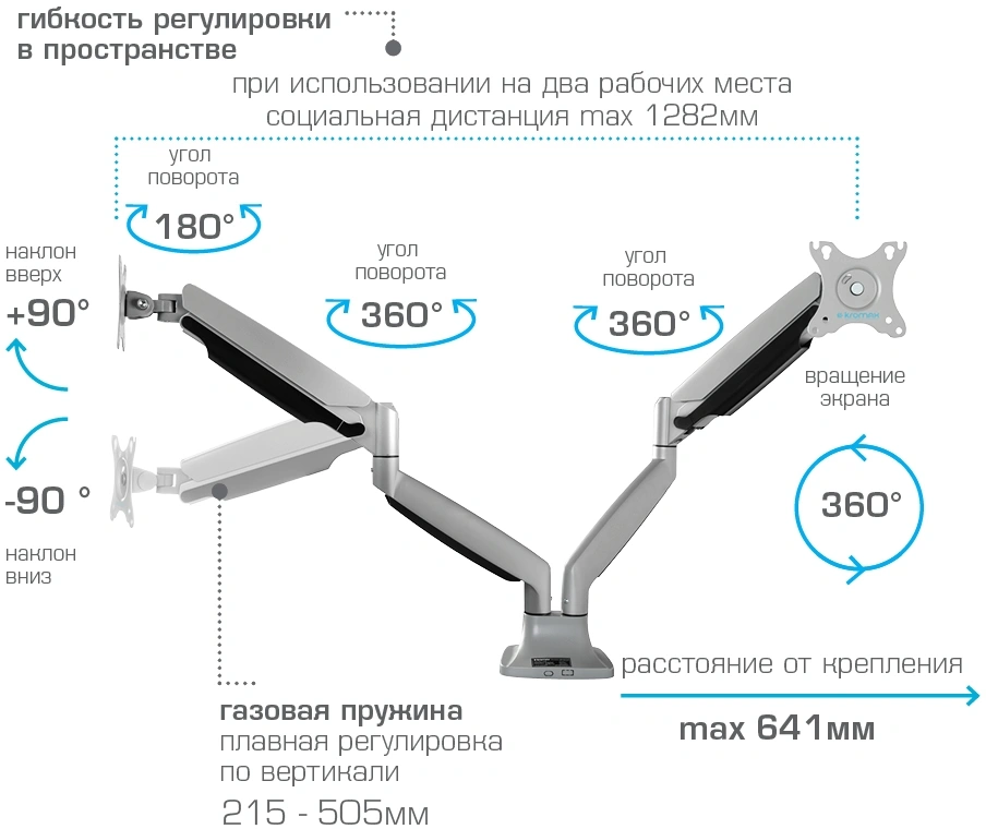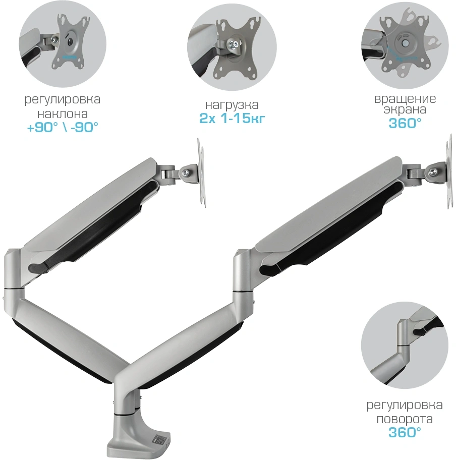 серебристый 17"-35" макс.15кг настольный поворот и...