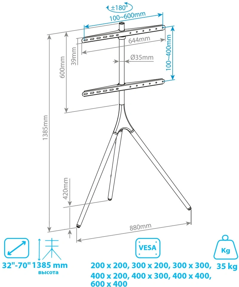 серебристый/береза 32"-70" макс.35кг напольный фик...