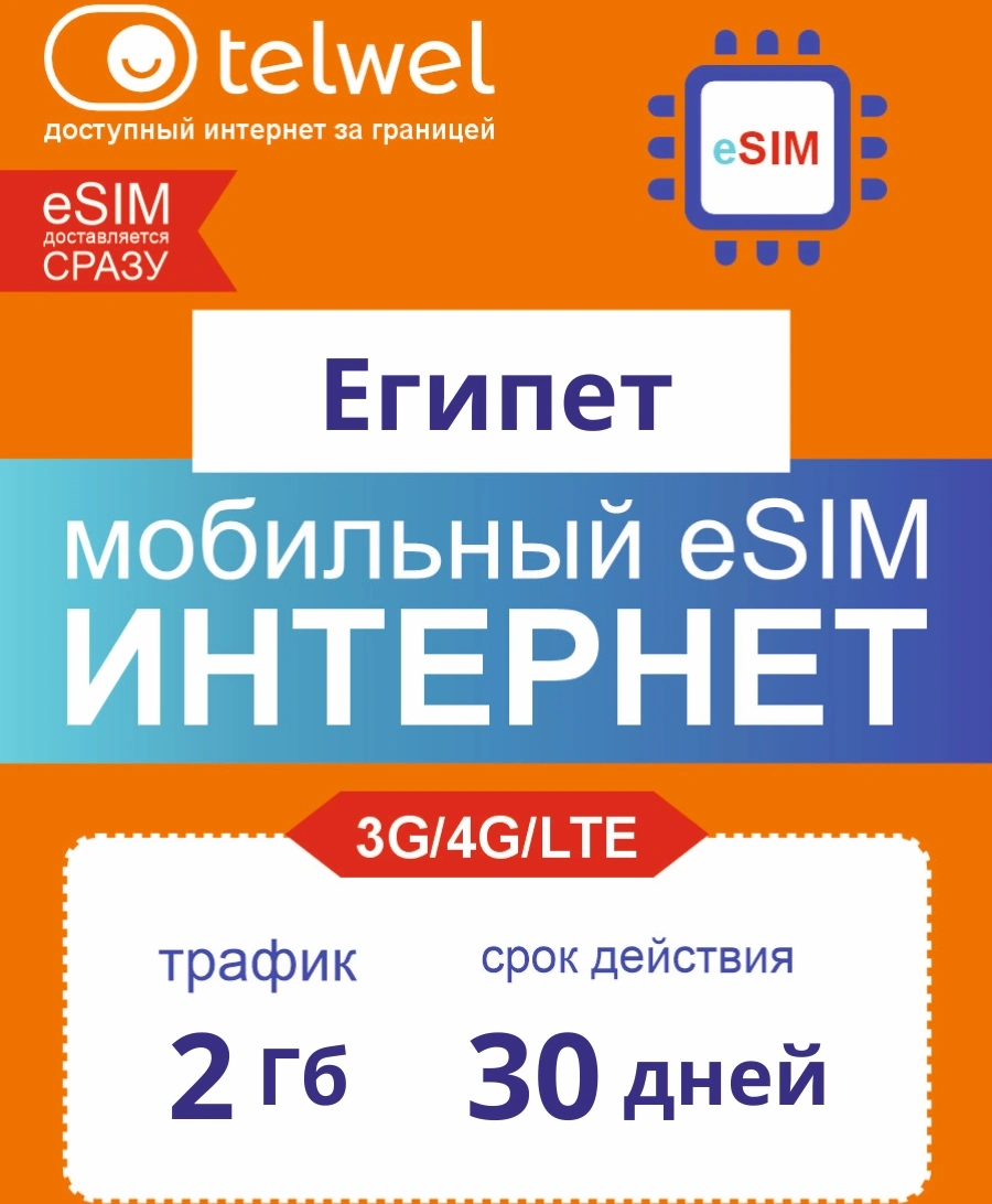 Карта eSIM Telwel Travel пакет Египет 2Гб 30 дней