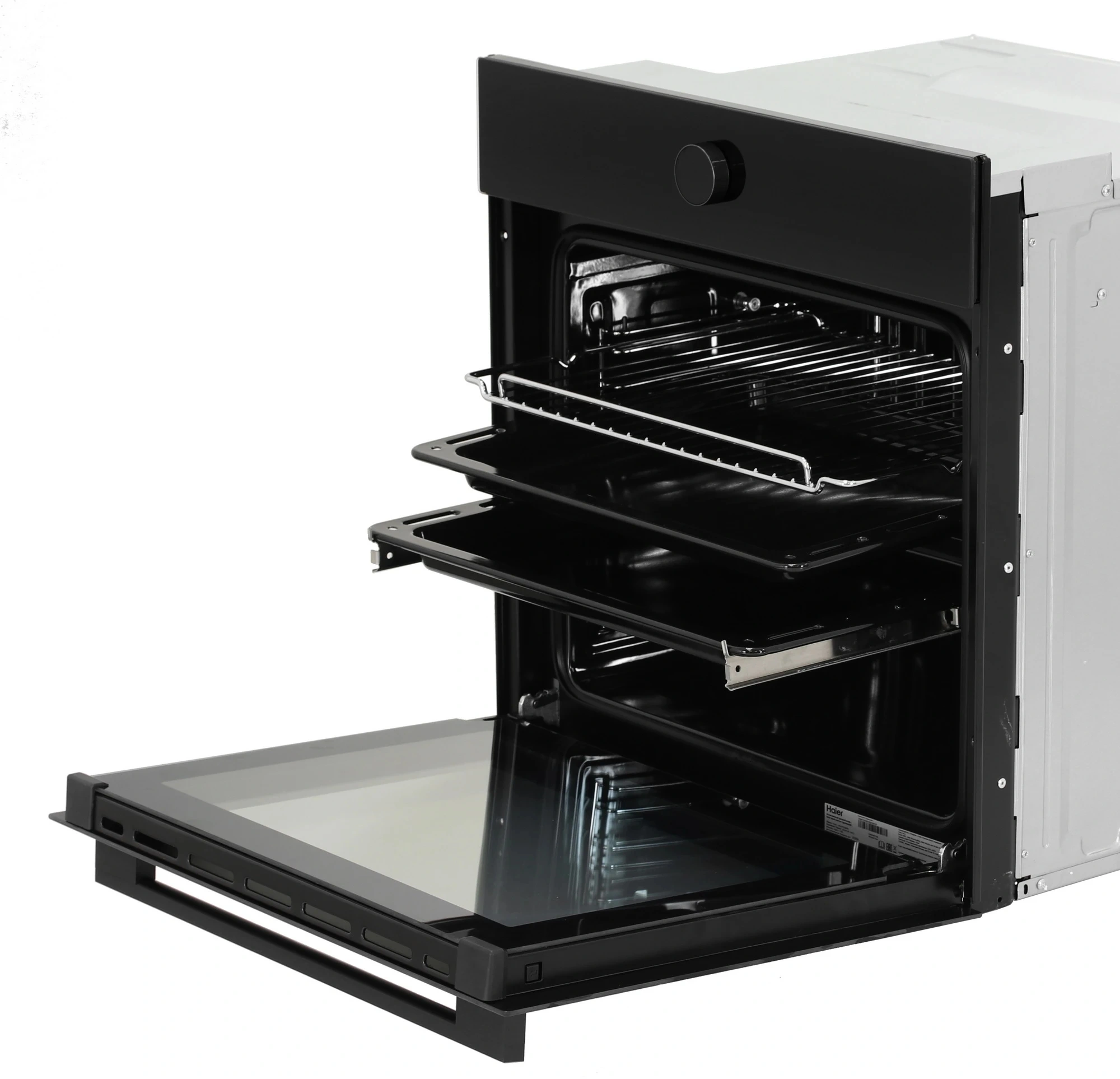 дисплей, полностью стеклянная внутренняя поверхность дверцы духовки, телескопические направляющие, электронный программатор