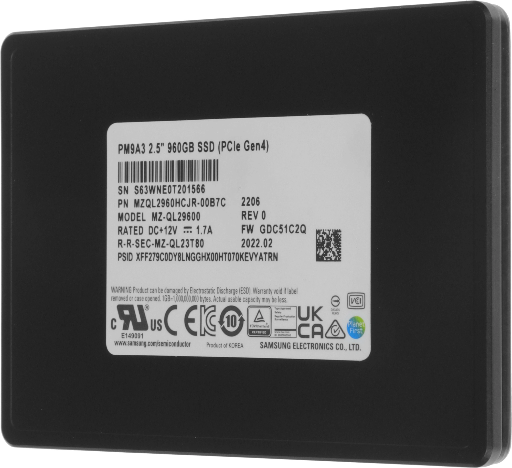 Накопитель SSD Samsung PCIe 4.0 x4 960GB MZQL2960HCJR-00B7C