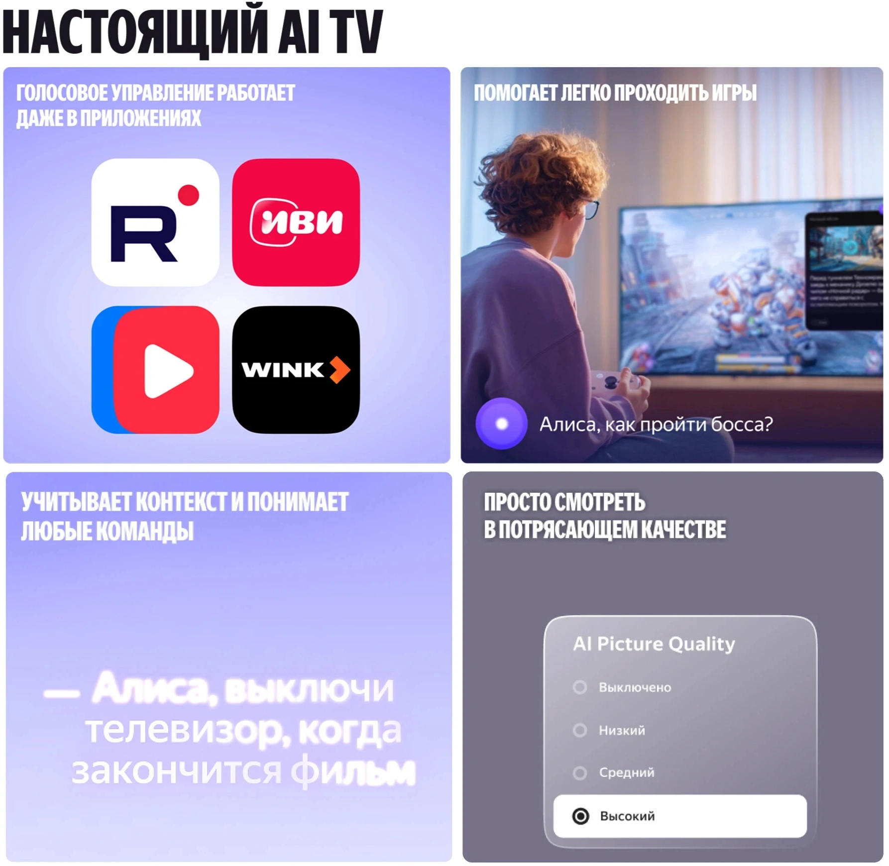 Яндекс.ТВ черный 4K Ultra HD 144Hz MEMC USB WiFi S...
