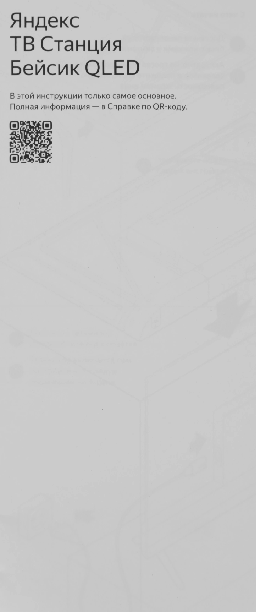 ТВ Станция Бейсик QLED, Две ножки и комплект винтов, Пульт и 2 батарейки ААА (внутри), Кабель питания, Краткое руководство пользователя