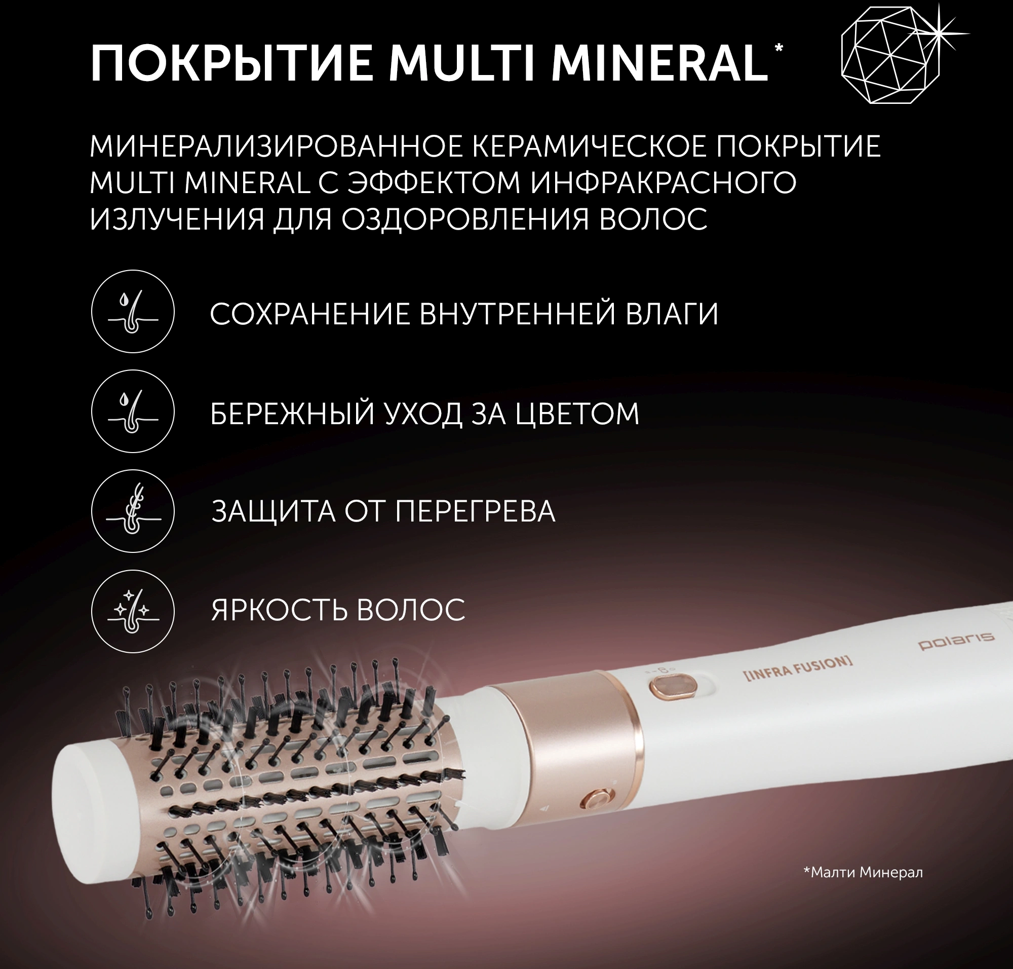Multi Mineral с эффектом инфракрасного излучения; Ультрамягие атравматичные металлические щетины для двойного блеска