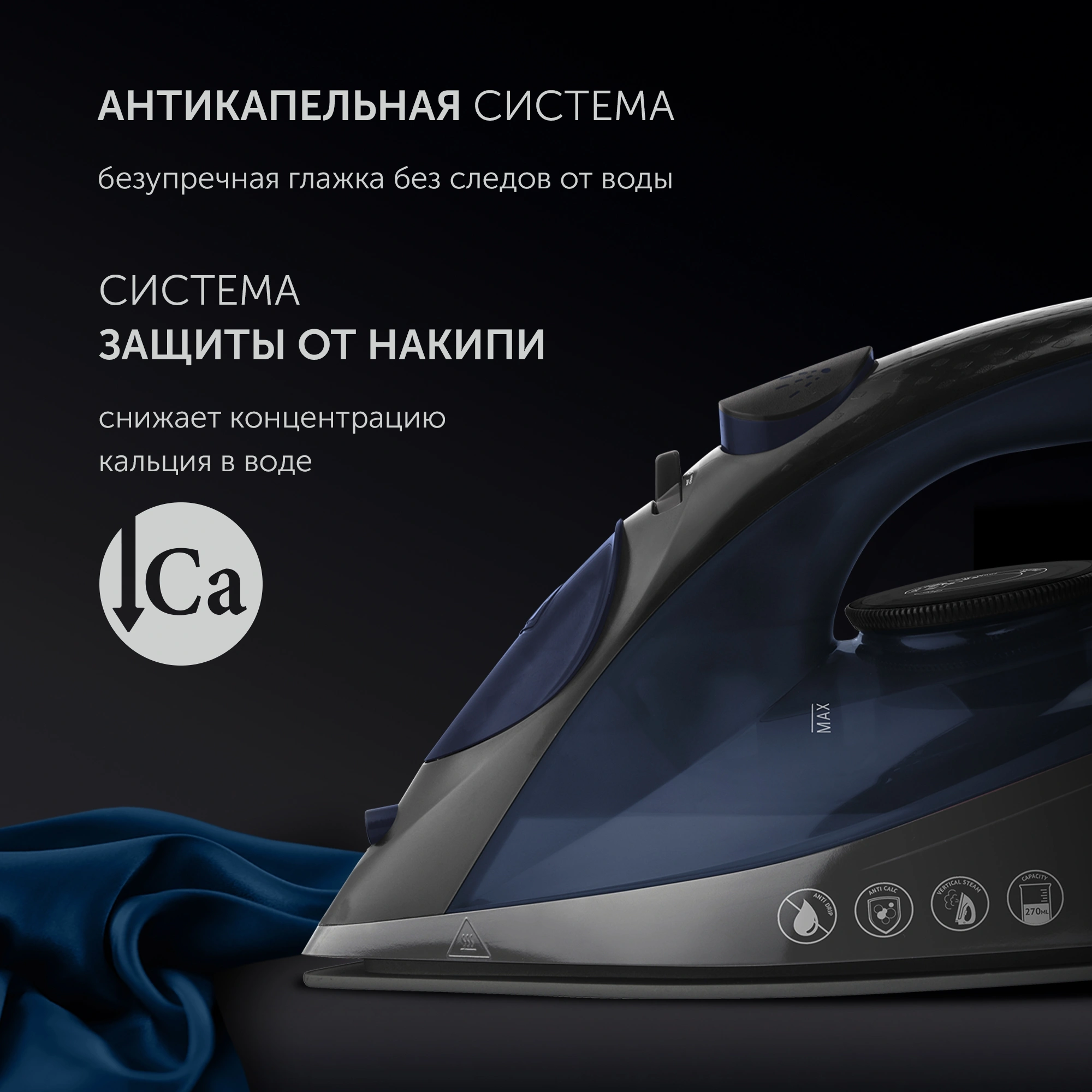 Вертикальное отпаривание, Противокапельная система,Распылитель для воды, Защита от накипи, Самоочистка от накипи