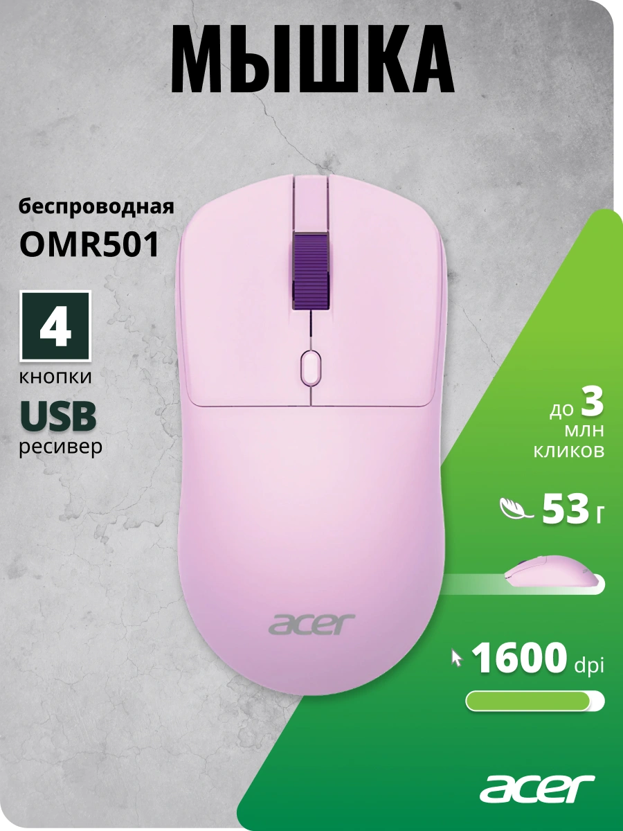 фиолетовый оптическая 1600dpi silent беспров. USB ...