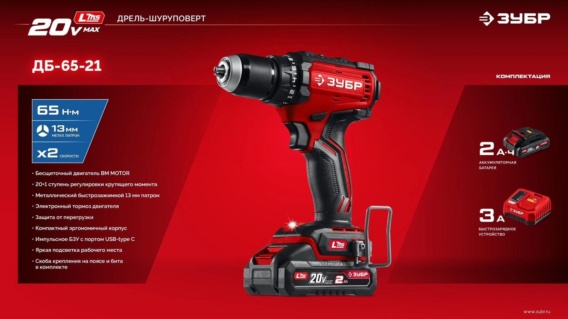 Дрель-шуруповерт, аккумулятор, зарядное устройство, бита, скоба крепления, руководство по эксплуатации.