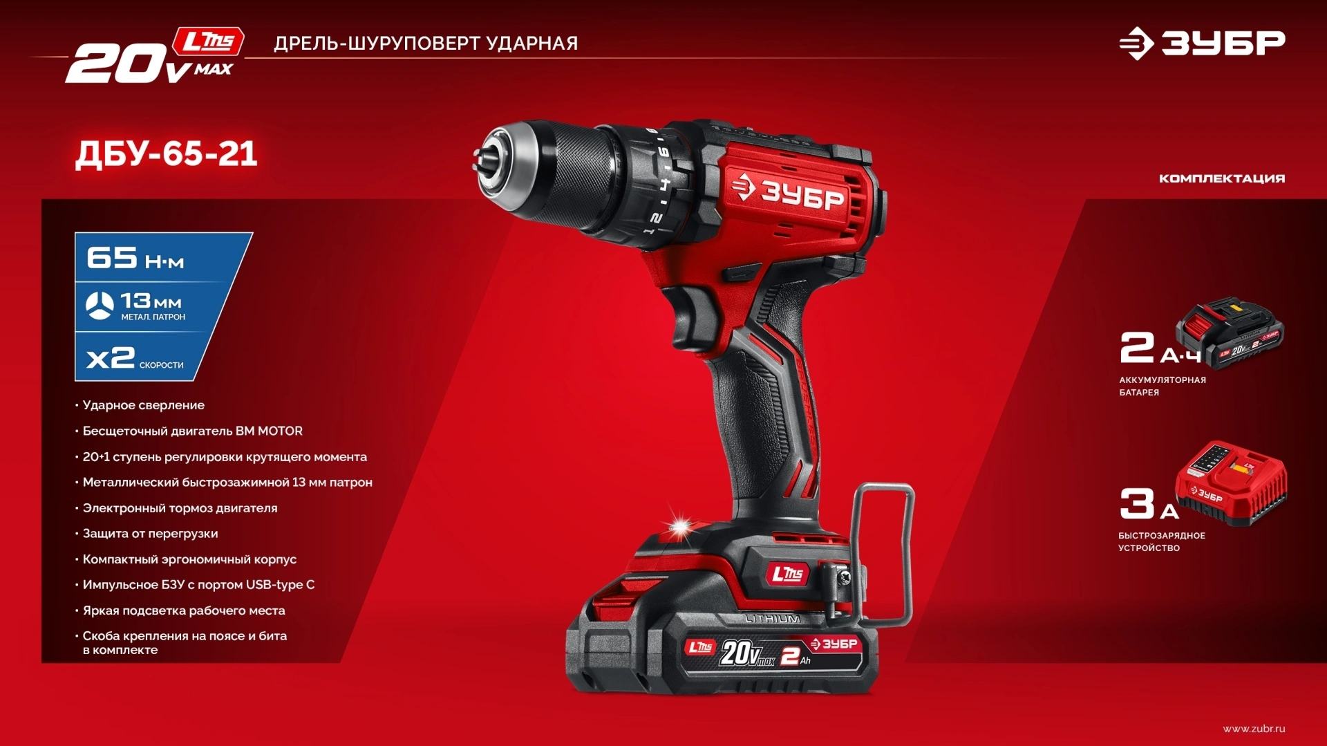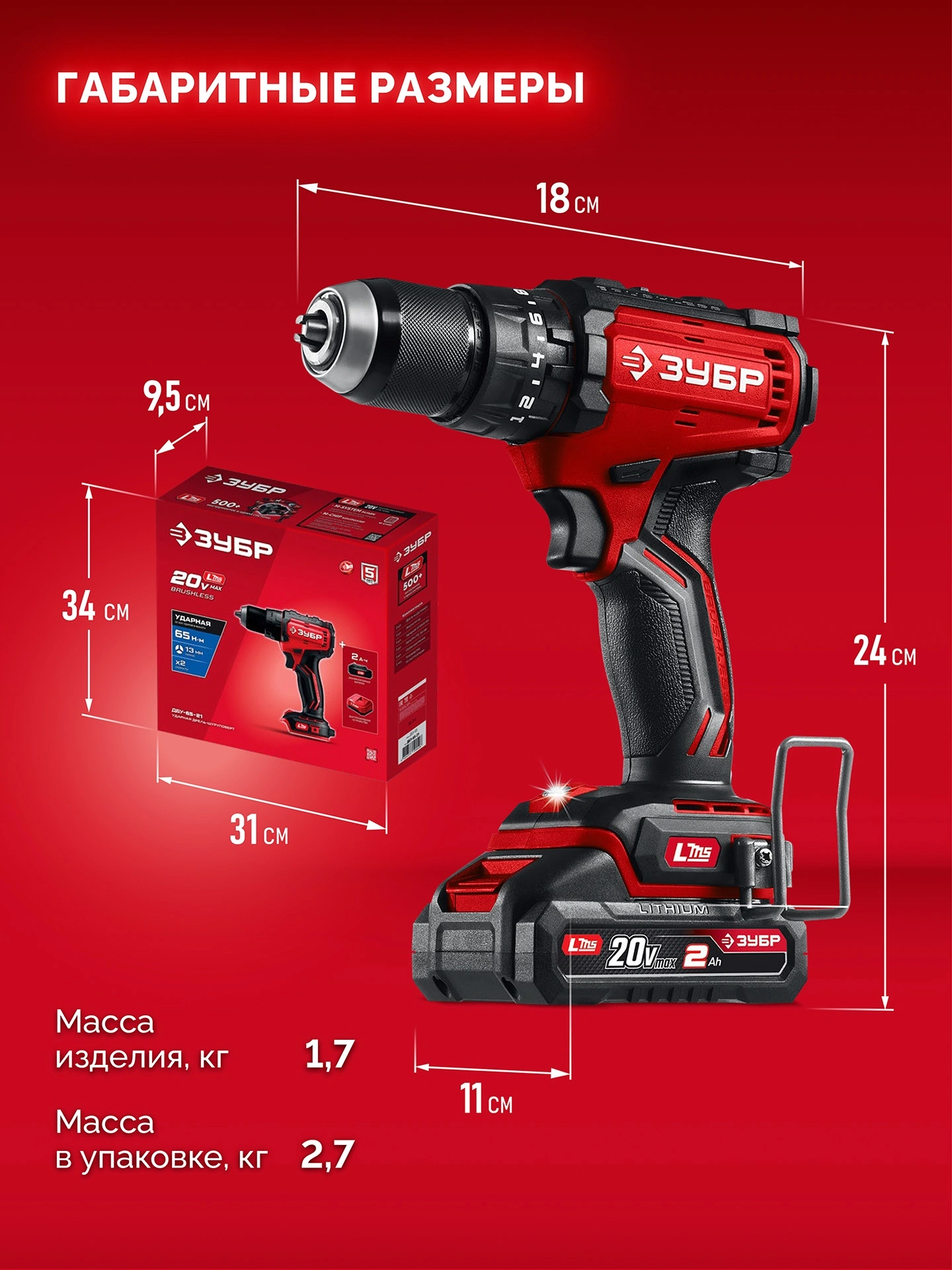 Дрель-шуруповерт, аккумулятор, зарядное устройство, бита, скоба крепления, руководство по эксплуатации.