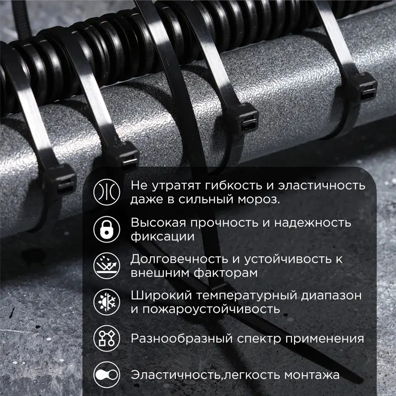 Стяжка пластиковая Rexant 87-0401 400x4.8мм (упак:100шт) нейлон внешний (-60/+85) черный