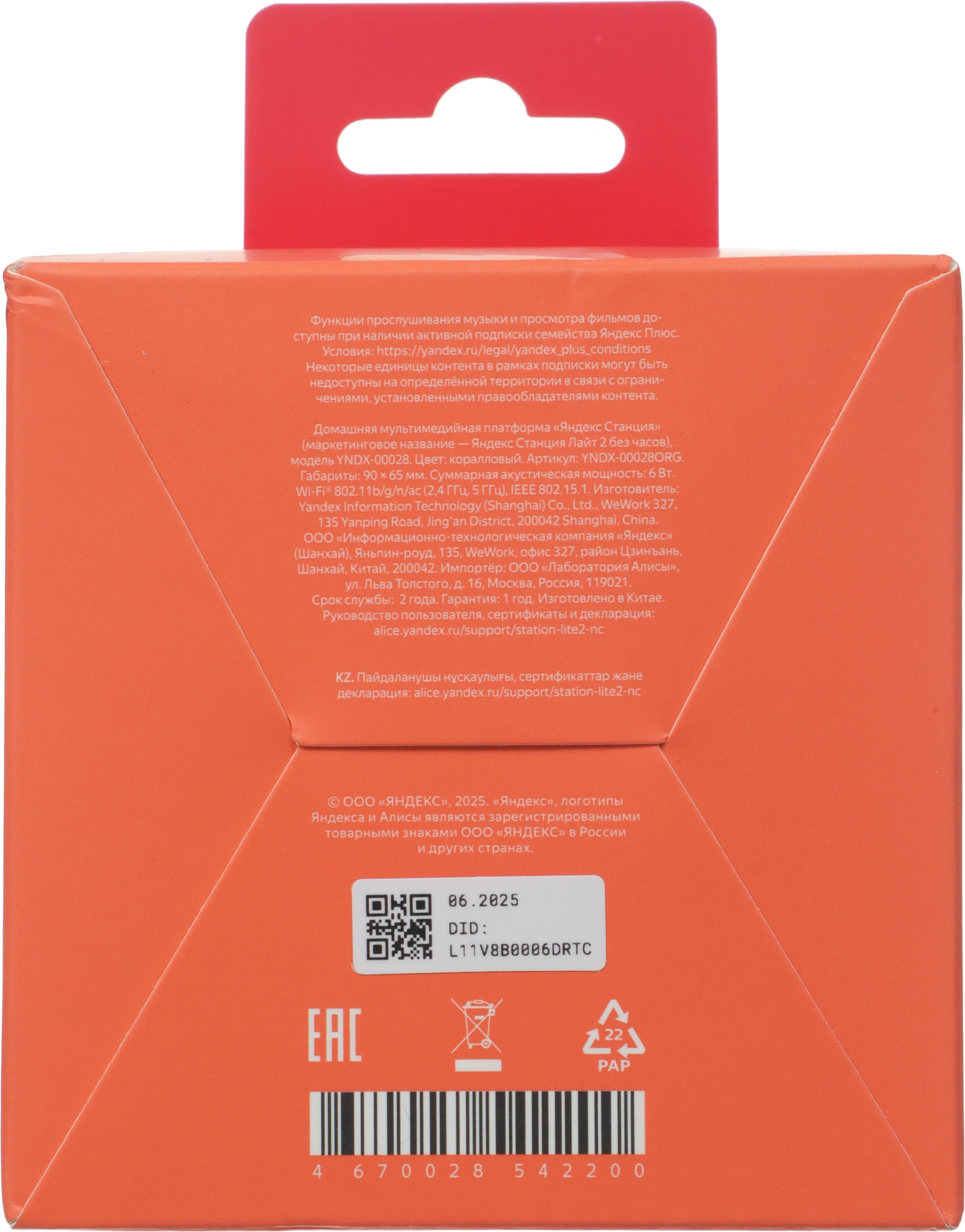 Портативный внешний аккумулятор YNDX-00651 (приобретается отдельно)