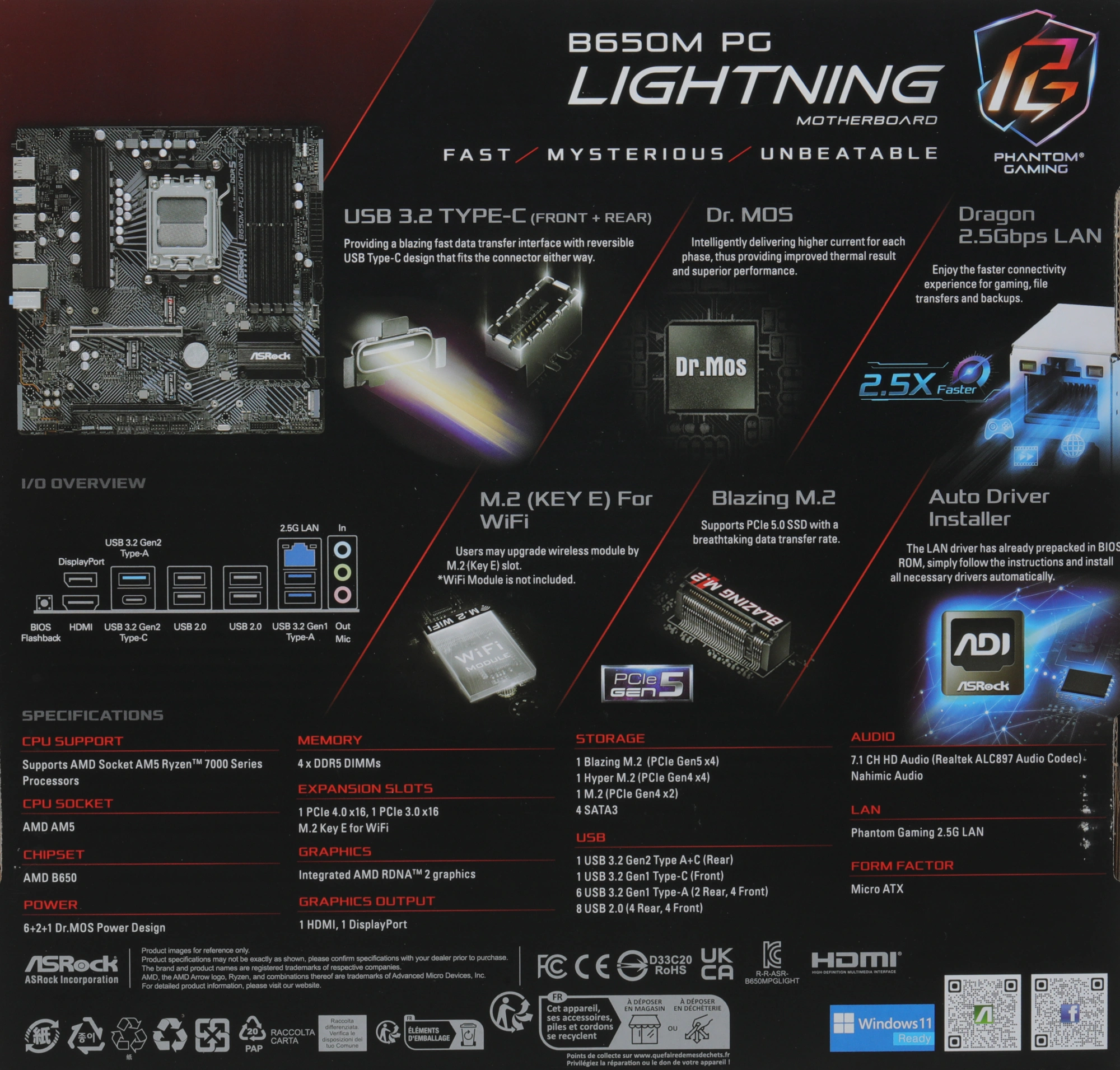 Socket AM5 AMD B650 4xDDR5 mATX AC`97 8ch(7.1) 2.5...