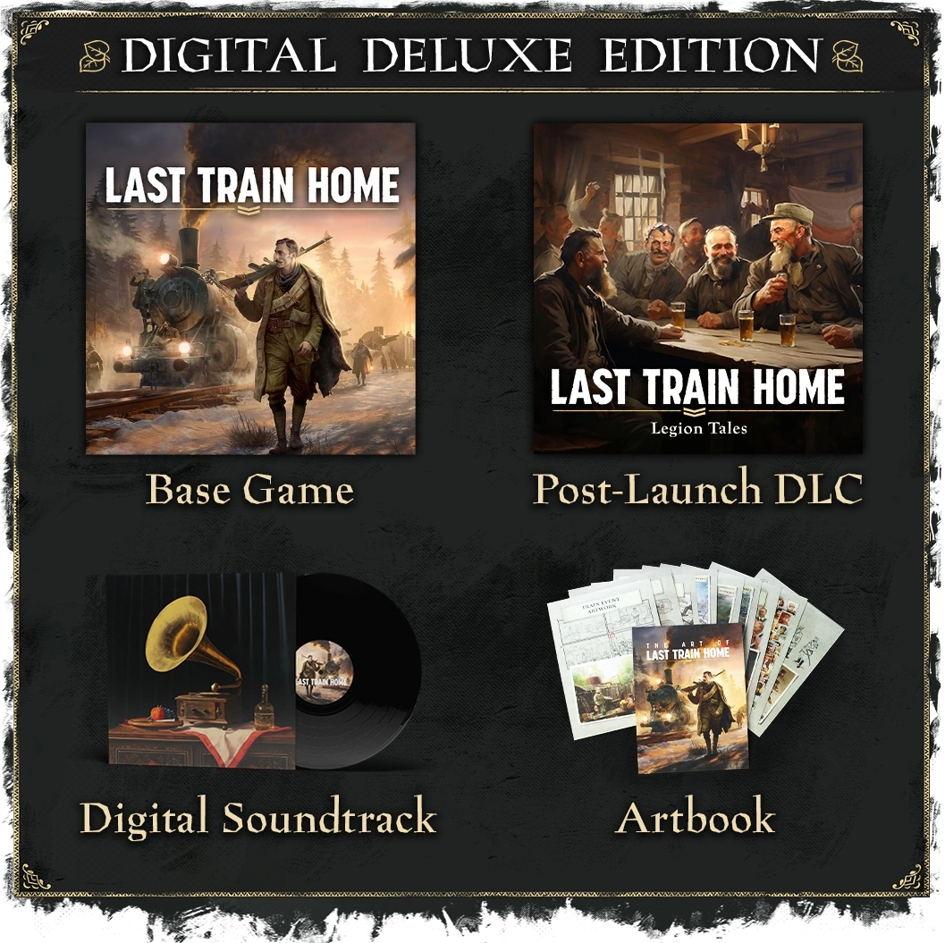 Откройте для себя полную историю легионеров, приобретя издание «Last Train Home Digital Deluxe Edition»: в нем вас ждут большое дополнение «Last Train Home - Legion Tales», цифровой артбук и саундтрек игры.