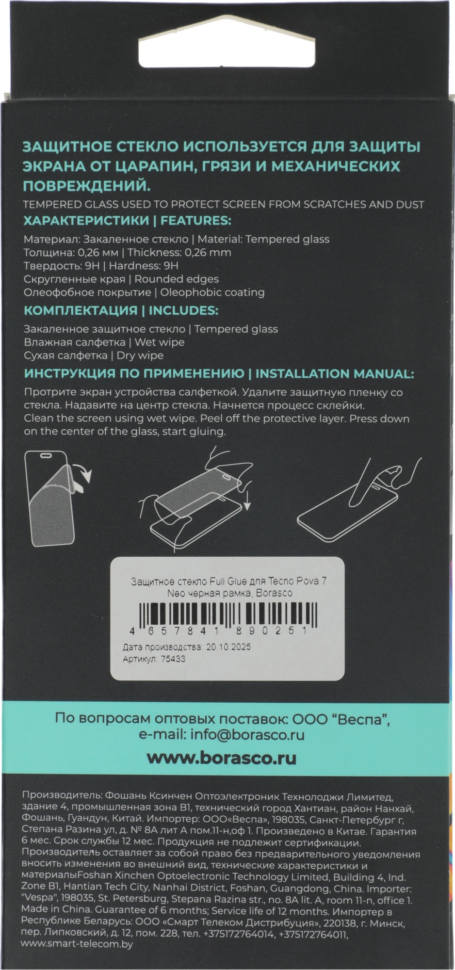 материал: закалённое стекло, твёрдость 5H, скруглённые края, черная рамка