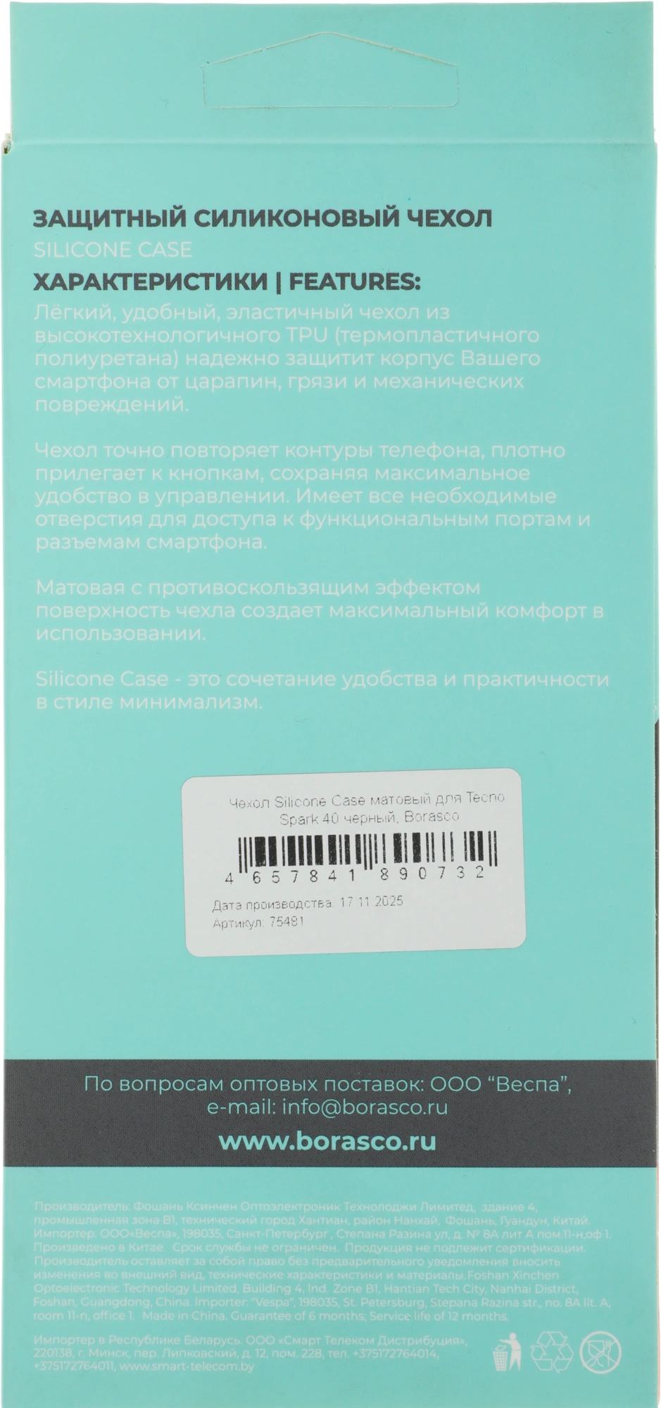 Чехол Silicone Case специально разработан с учётом всех особенностей Вашего смартфона. Благодаря толщине материала не более 0,8мм чехол минимально увеличивает размеры смартфона, при этом защищает заднюю панель от царапин, грязи и пыли, а матовая поверхность предотвращает выскальзывание из рук.