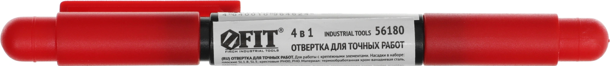 Отвертка для точных работ "мини" 4-в-1 переставная FIT 56180 Для точных работ. «Мини». Материал: CrV сталь, пластик