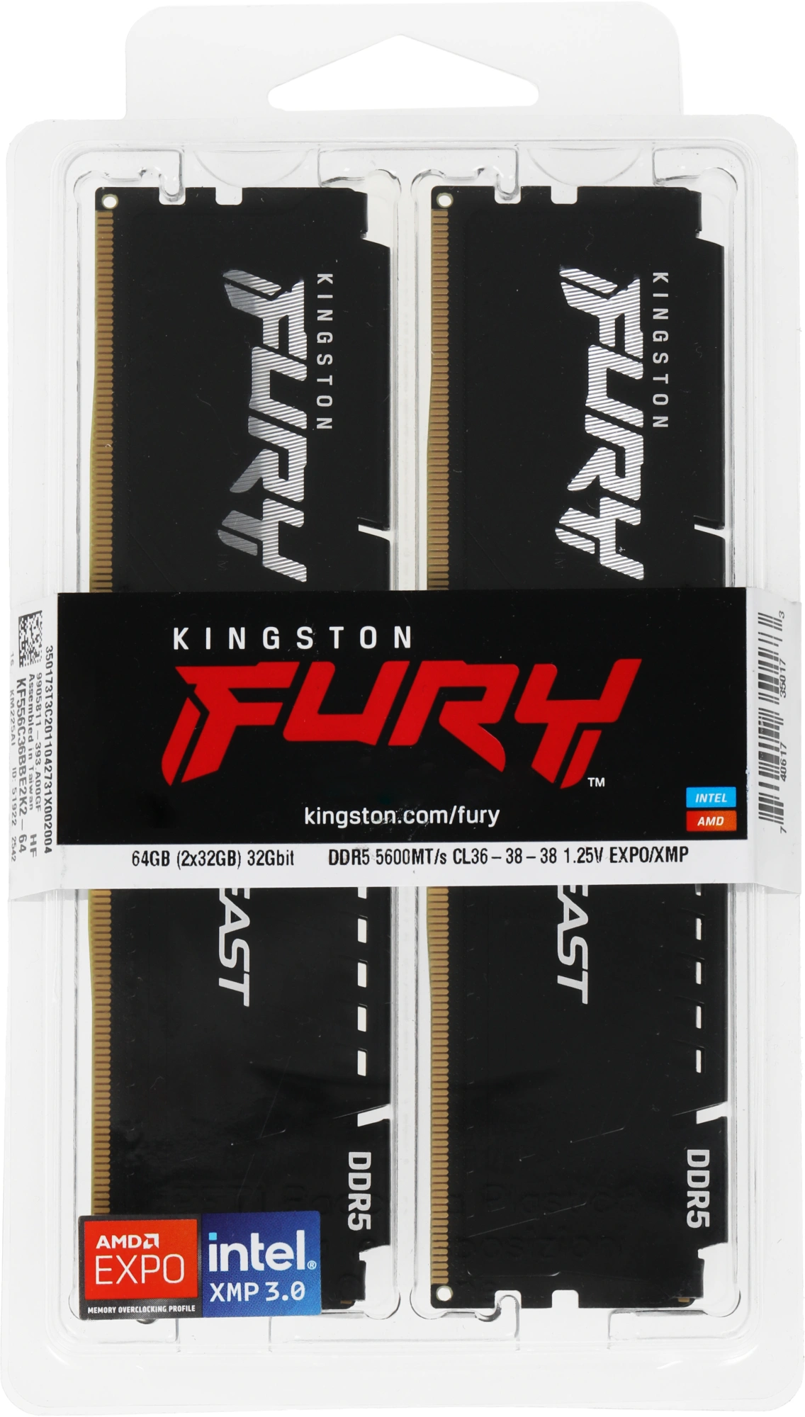 Fury Beast Black RTL Gaming PC5-44800 CL36 DIMM 2...