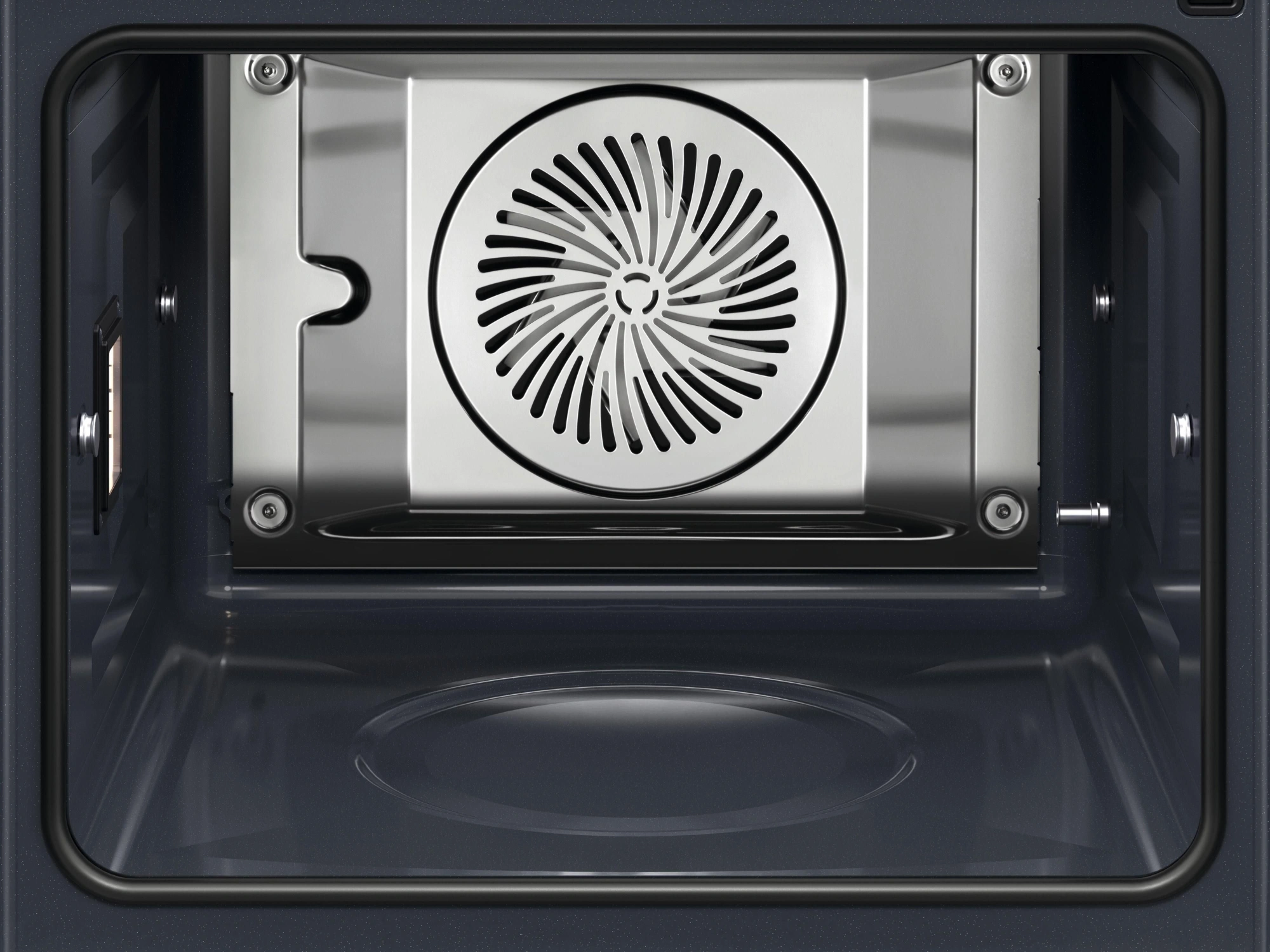 вентилятор охлаждения, двухуровневое освещение, дисплей, полностью стеклянная внутренняя поверхность дверцы духовки, термощуп