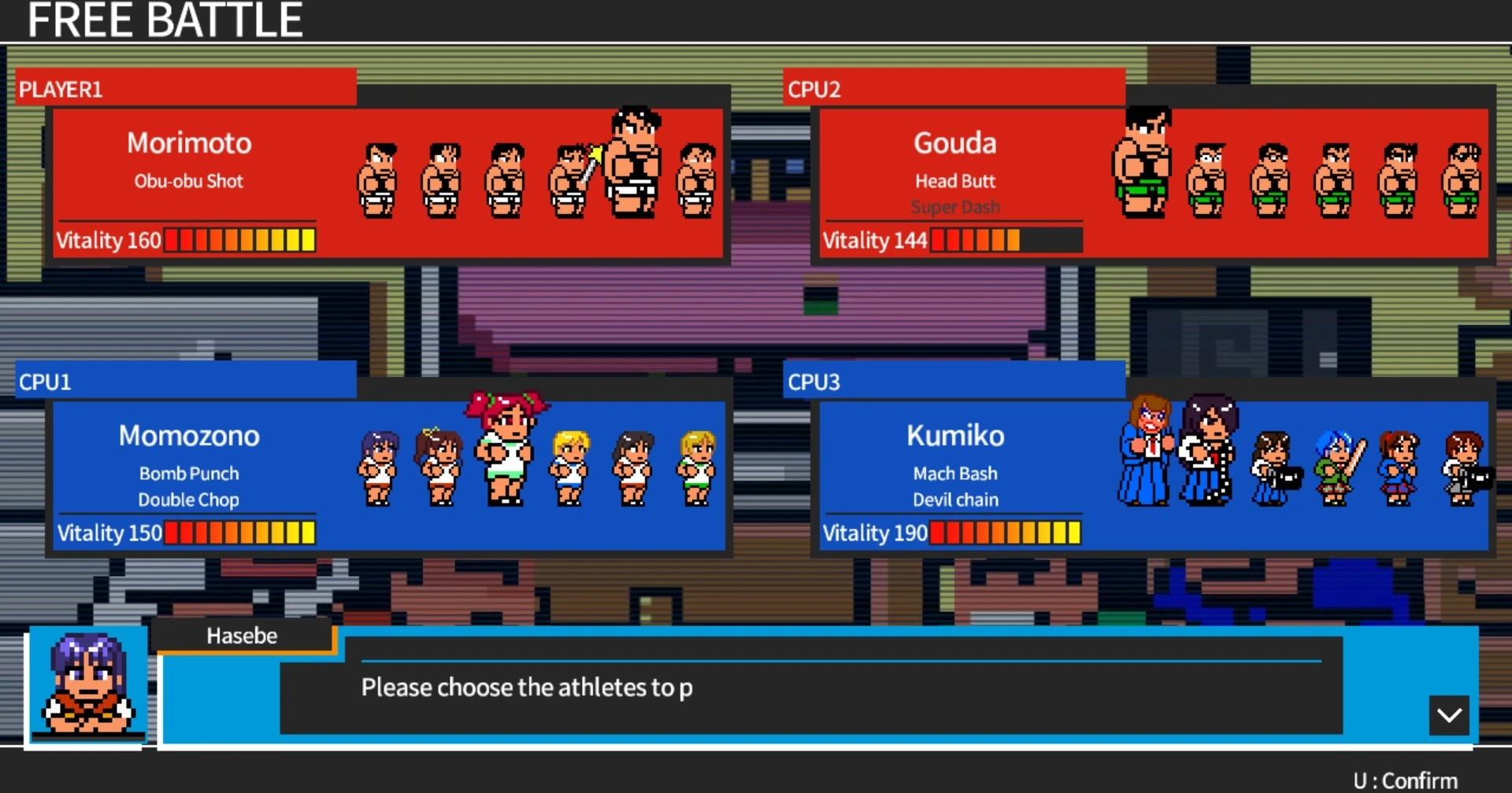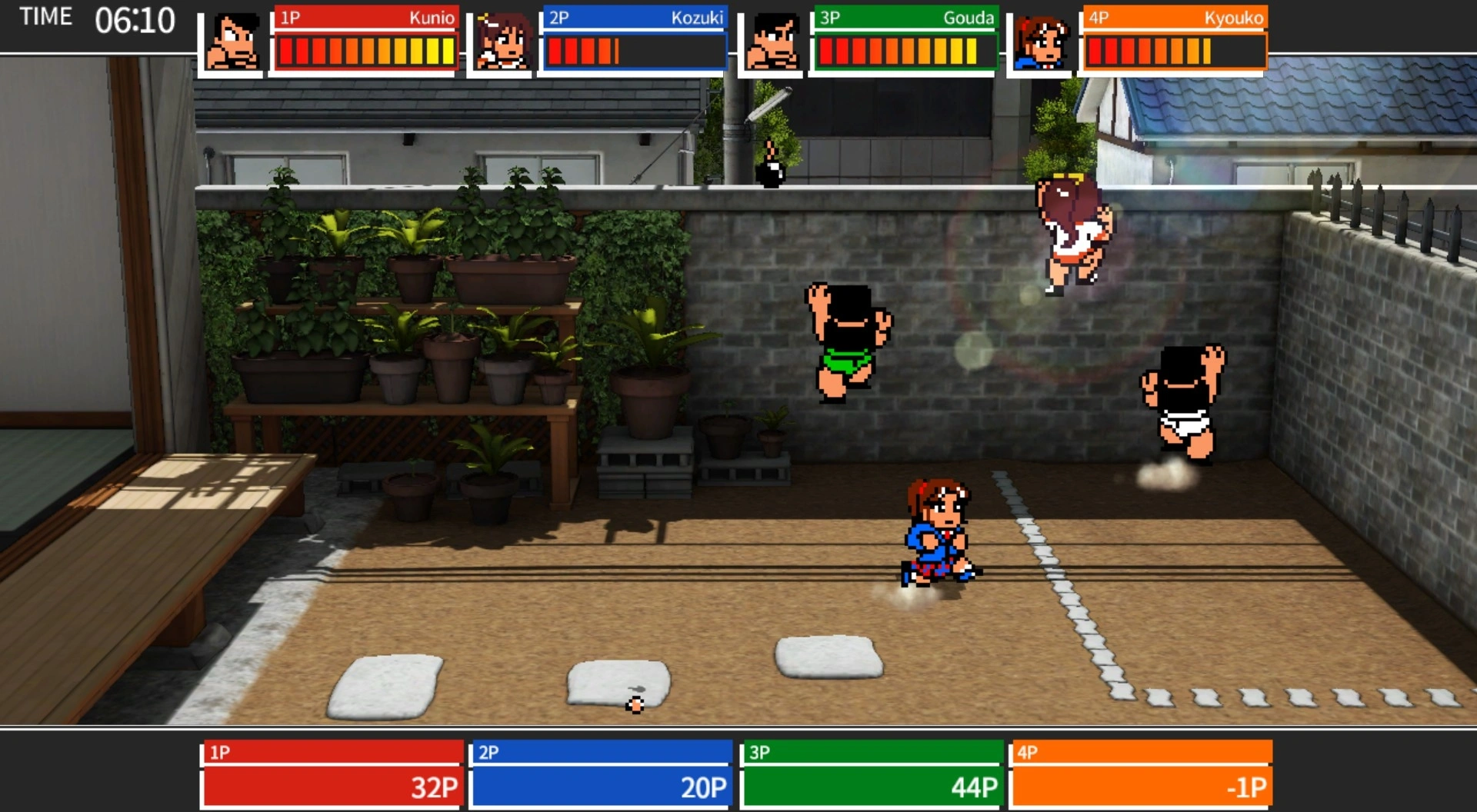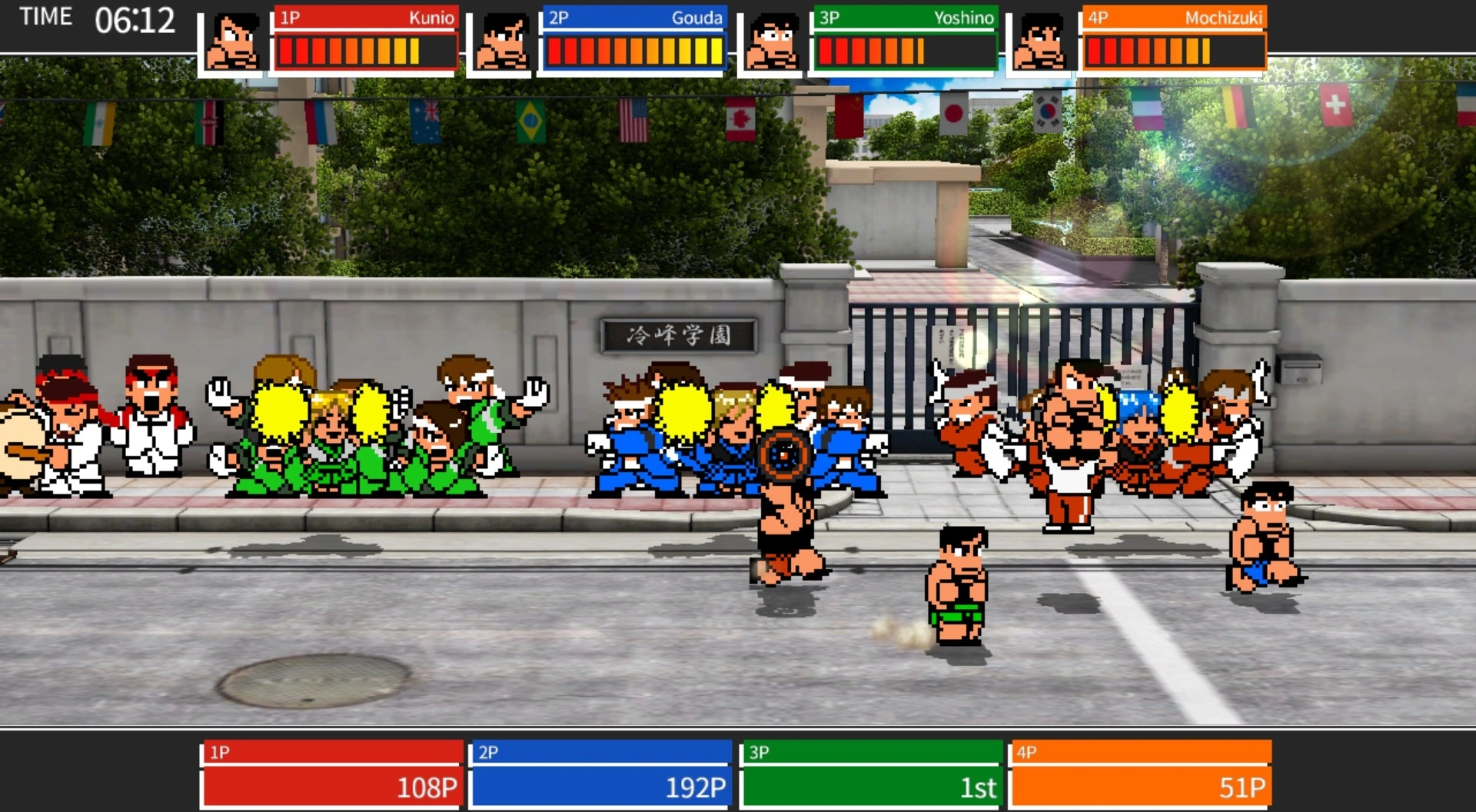 Это спортивный вызов Ривер-Сити! Правило простое: обязательно будьте №1 из 4 событий. Это оно! Бить и пинать? Конечно! Доступны деревянные мечи, гантели и даже бомбы. Великий спортивный вызов, где все возможно только началось !!!