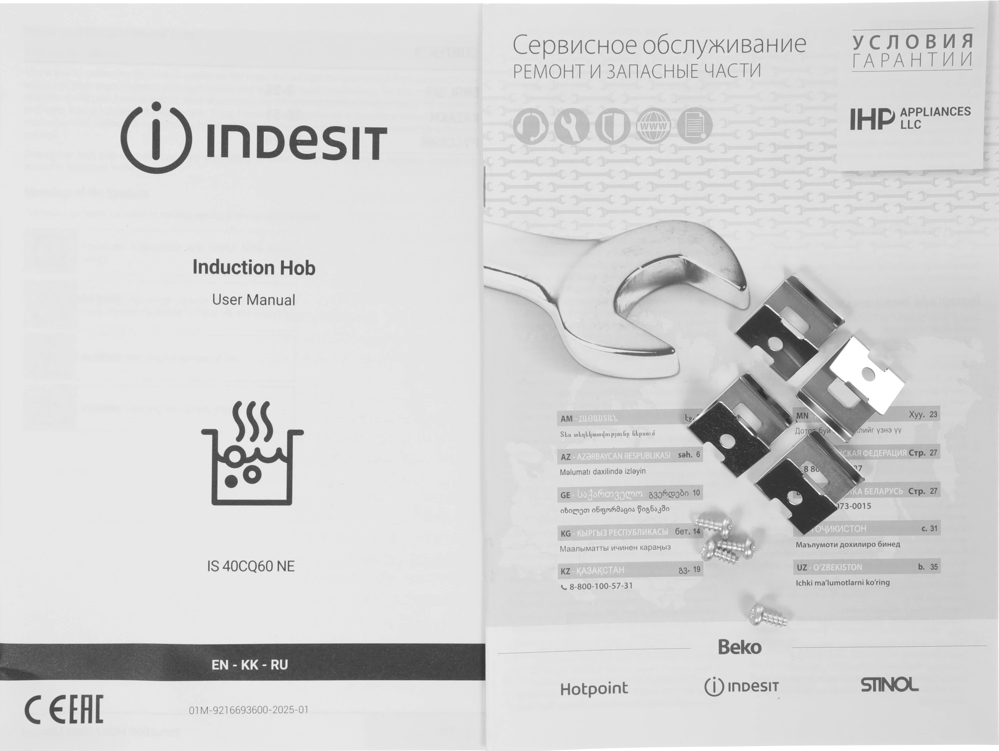 блокировка управления (защита от детей), защитное отключение, отключение при проливе жидкости, распознавание наличия посуды