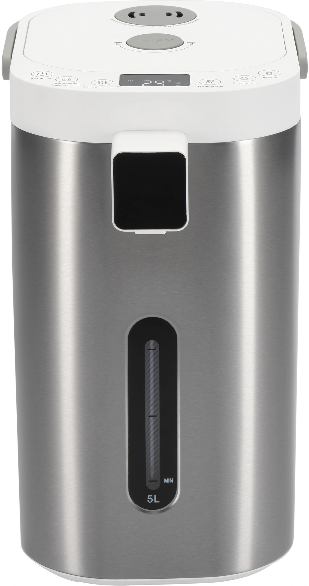 Термопот на все случаи жизни с большим функционалом, более компактный но вместительный, с плоской крышкой и утапливаемым замком.