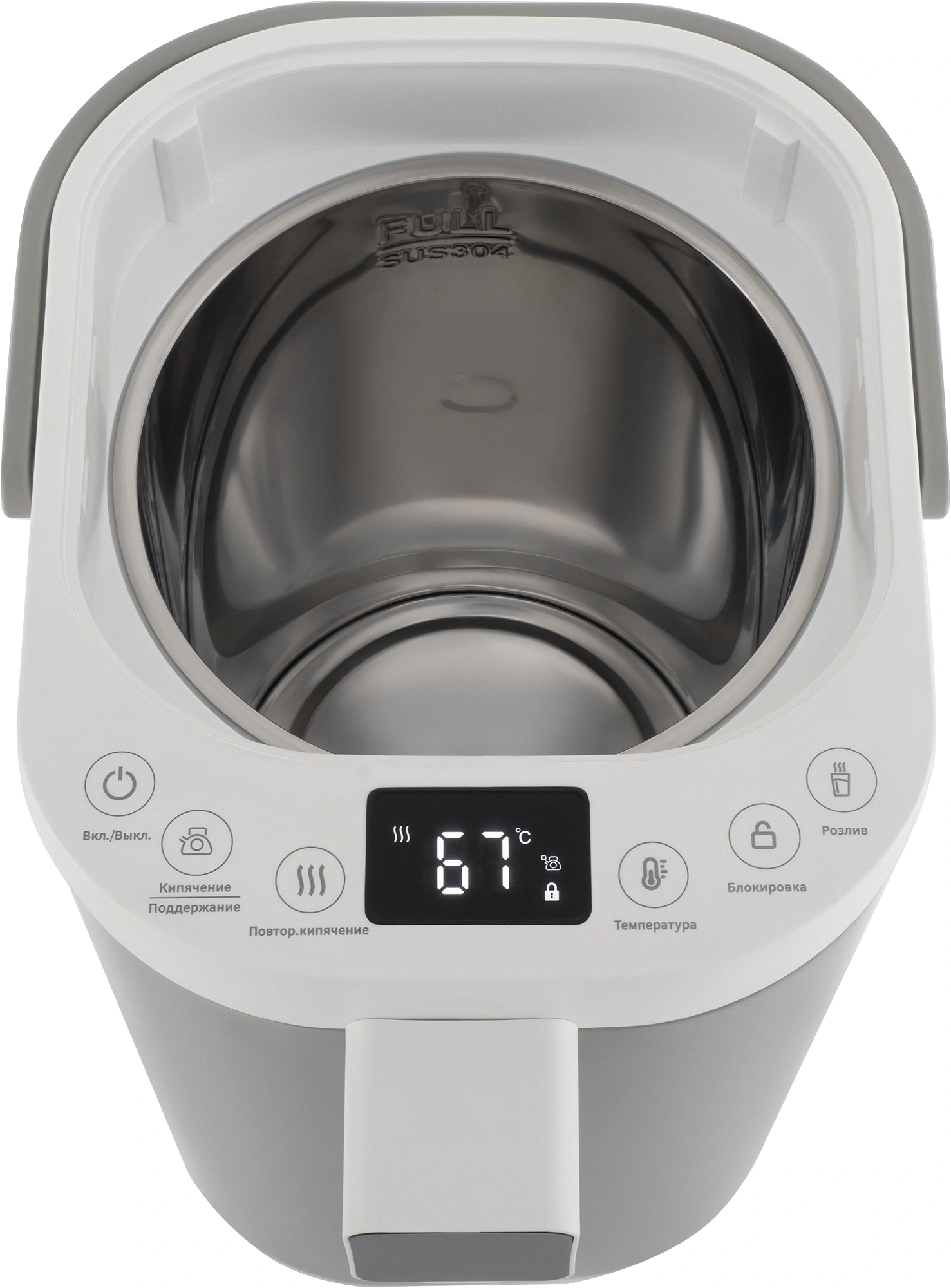 дисплей, отсоединяющийся шнур, подсветка шкалы уровня воды, ручка для переноски, съемная крышка