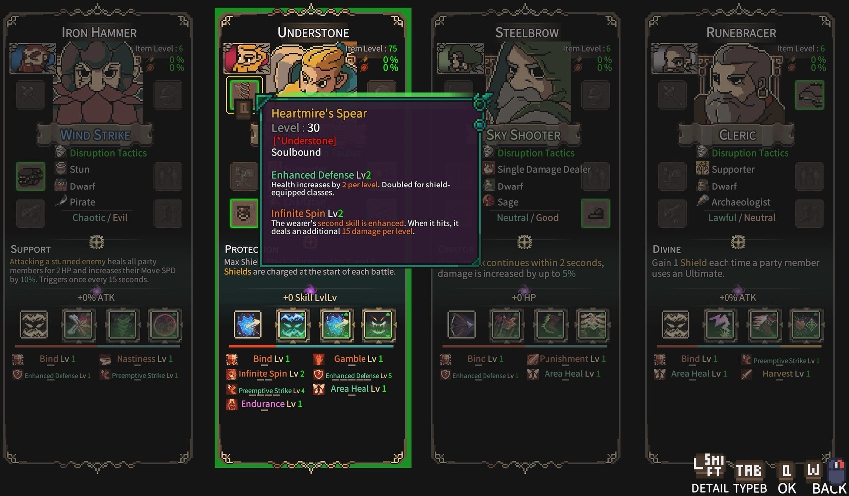 Собирайте группу и колоду с умом! Комбинируйте персонажей 9 классов, 6 разных происхождений и моральных убеждений, а также с разнообразными чертами. Выбирайте таланты предметов, найденных на каждом этапе.