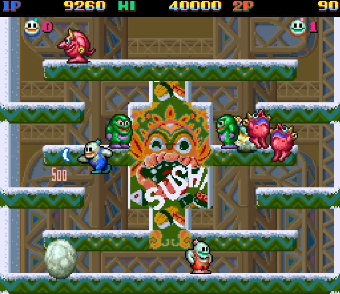 «SNOW BROS. - аркадная игра, разработанная в 1990 году компанией TOAPLAN, известной в то время своим мастерством в создании игр-стрелялок.
