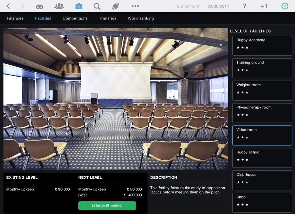 Возглавьте свою любимую команду союза регби. Pro Rugby Manager 2015 охватывает все аспекты задач настоящего менеджера союза регби: гарантируйте спортивный успех на поле и финансовый успех за его пределами и станьте следующим чемпионом!